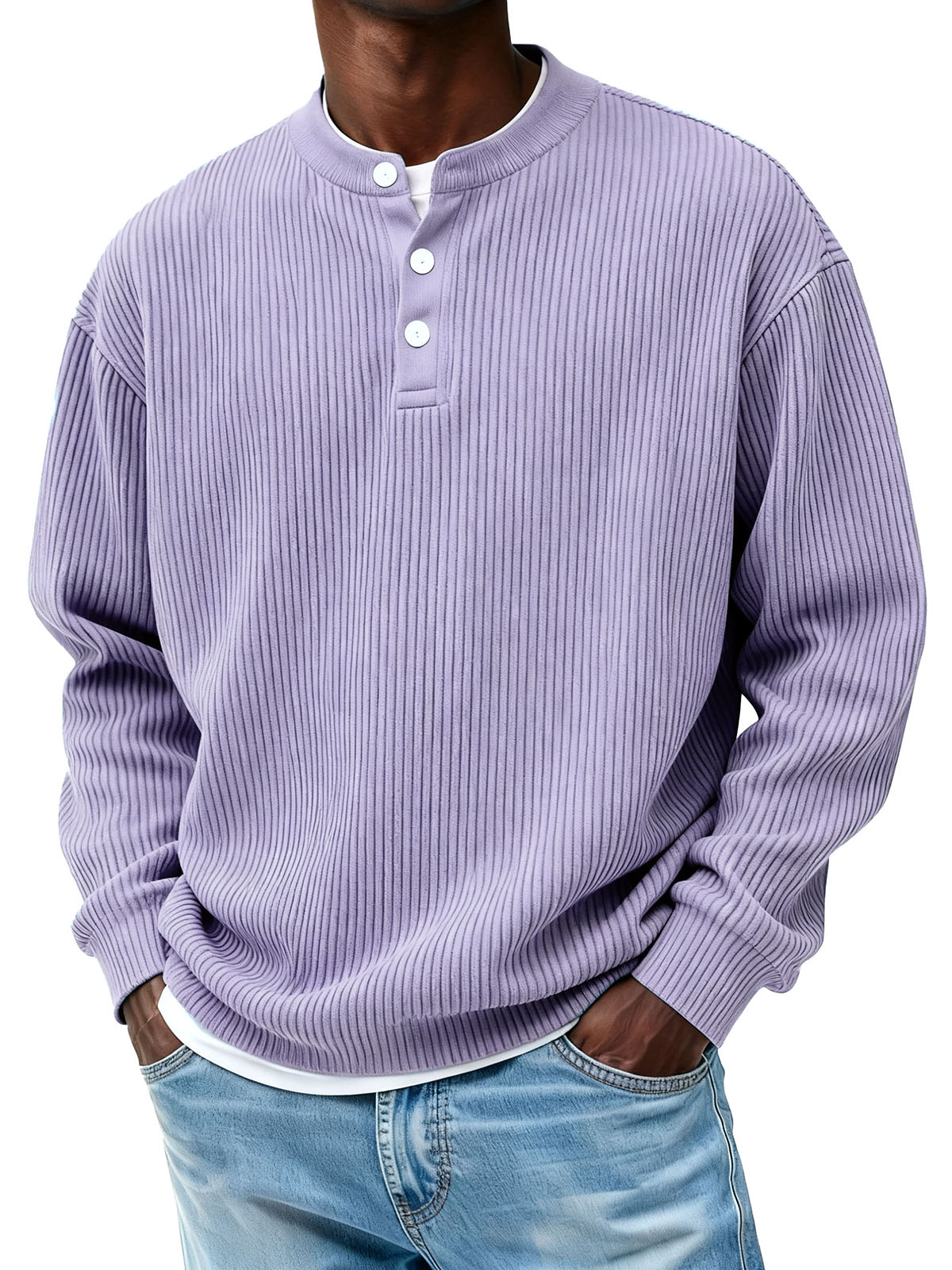 Men's Casual Pit Strip Fabric Three-button Long-sleeved Henry Shirt