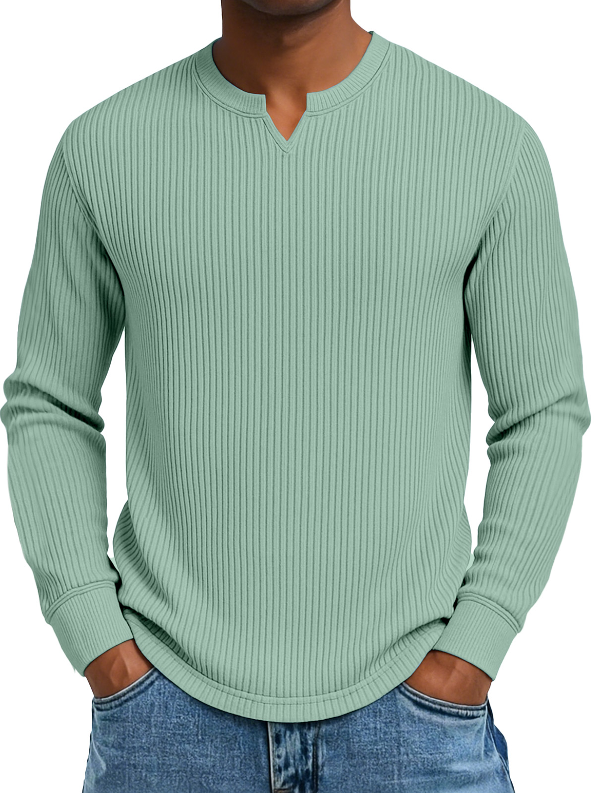 Men's Casual Solid Color Vertical Pit Small V-Neck Long Sleeve T-Shirt