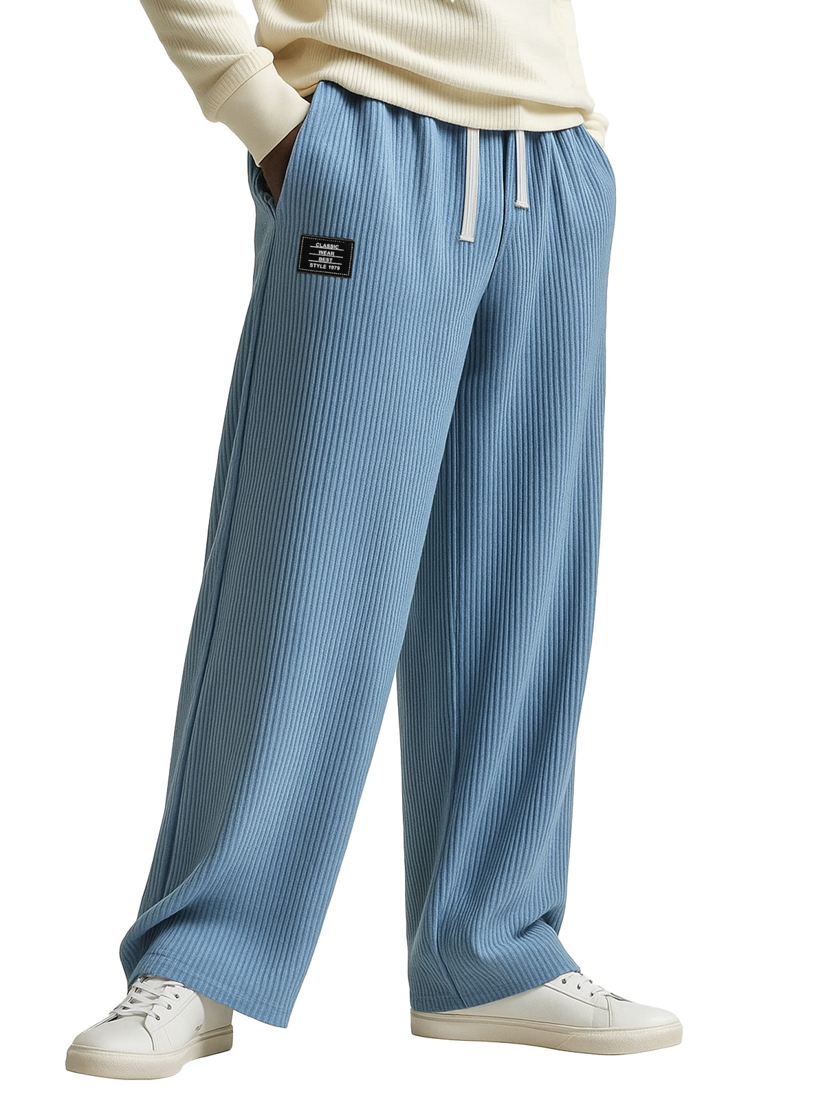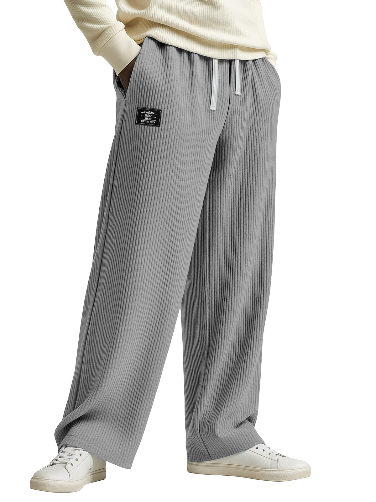 Men's Casual Solid Color Comfortable Vertical Pit Strip Logo Design Simple Trousers