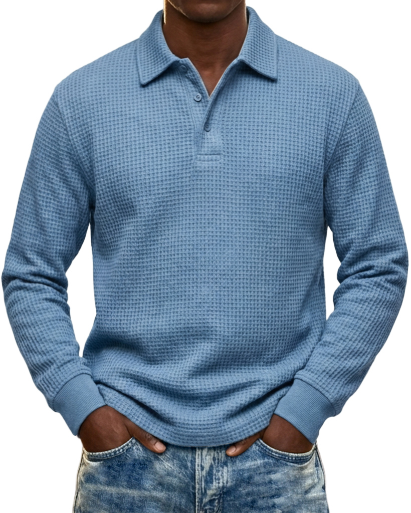 Men's Urban Casual Waffle Knit Everyday Long-Sleeve Polo Shirt
