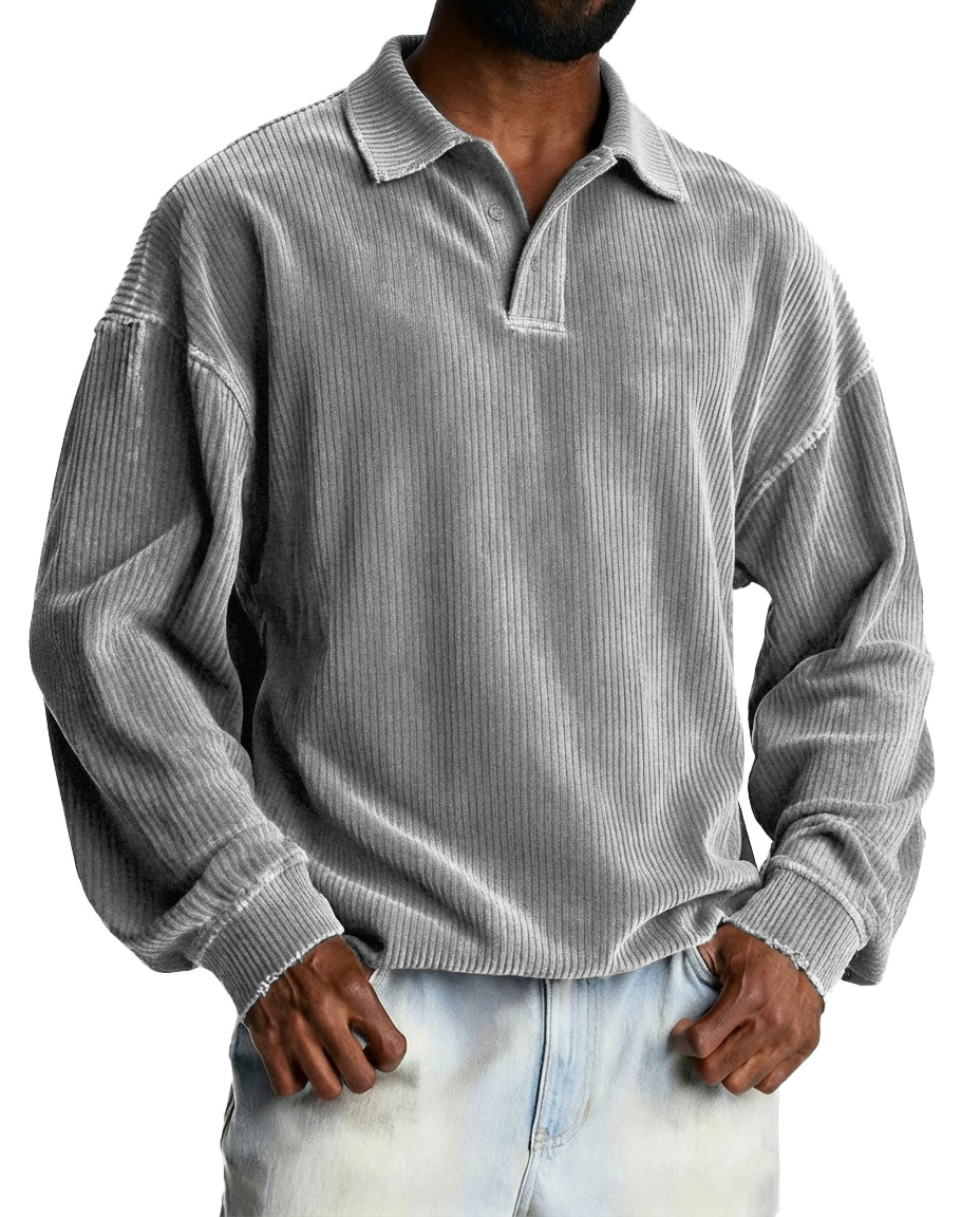 Men's Vintage Corduroy Lapel Button-down Casual Long-sleeved Polo Shirt