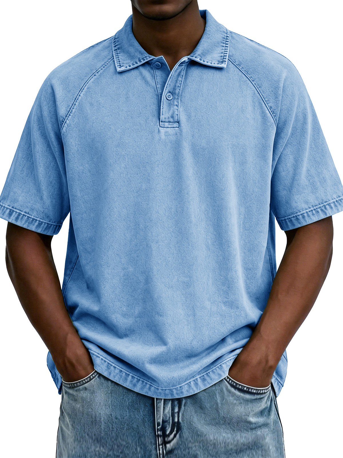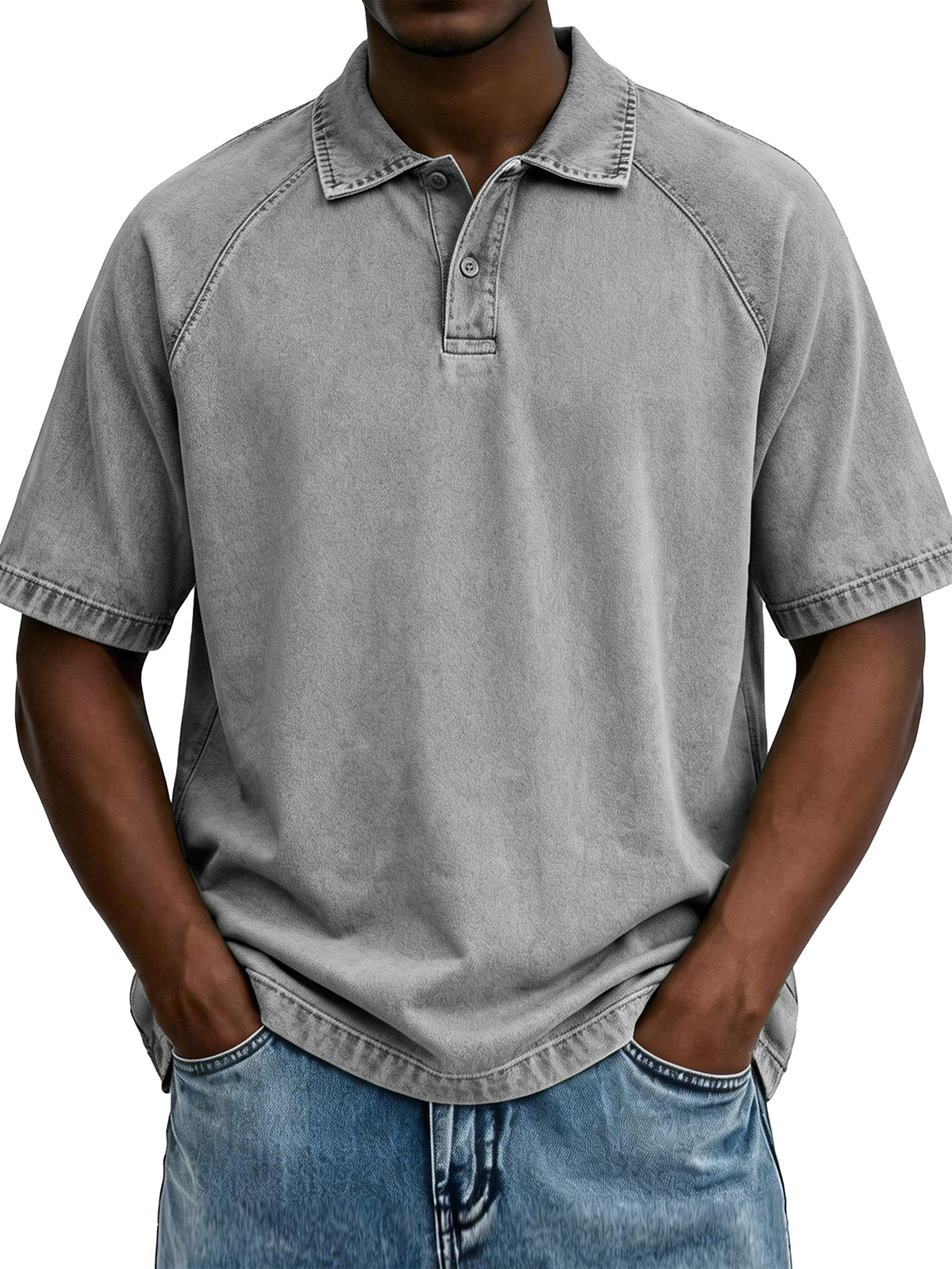 Men's Fashionable Raglan Distressed Collared Loose Short-Sleeve Polo Shirt