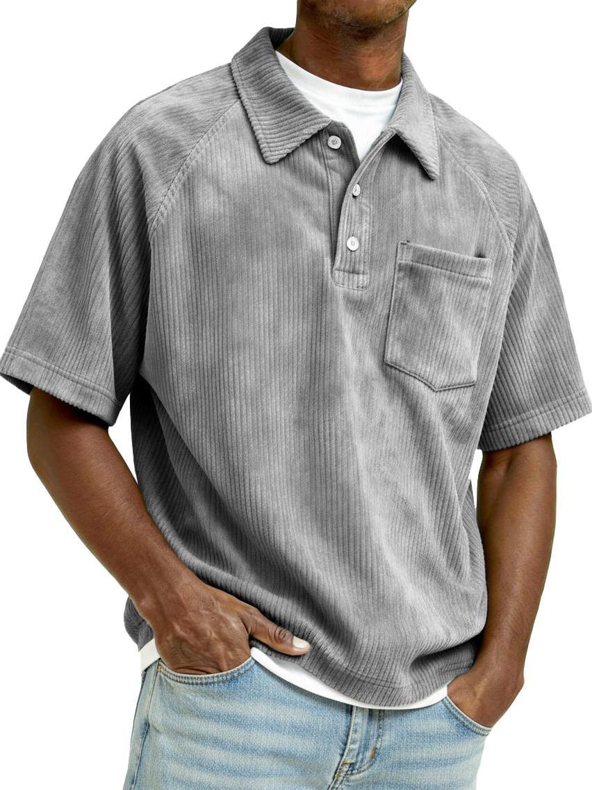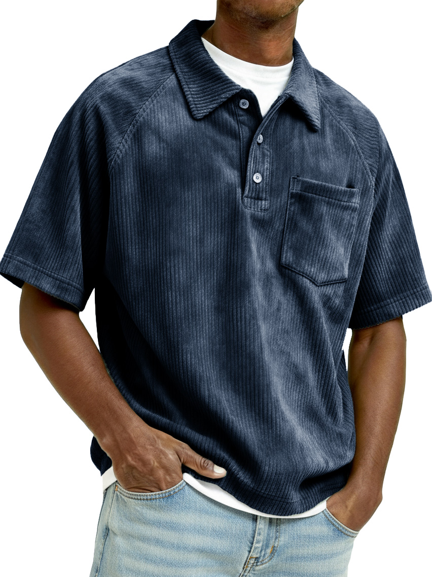 Men's Retro Raglan Corduroy Loose Pocket Short-Sleeve Polo Shirt