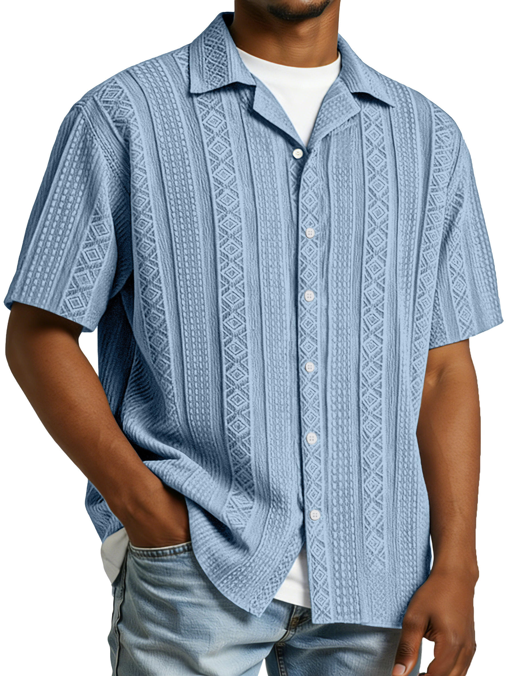 Men's Fashionable Casual Jacquard Fabric Collared Short-Sleeve Polo Shirt