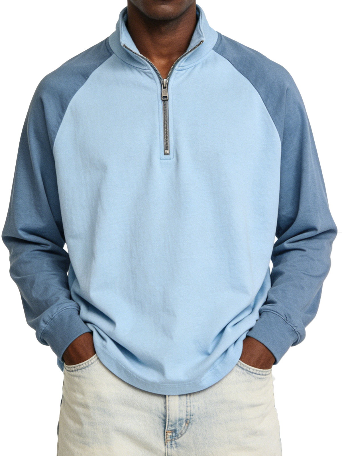 Men's Vintage Suede Color-blocked Raglan Sleeve Quarter-zip Pullover Polo Shirt
