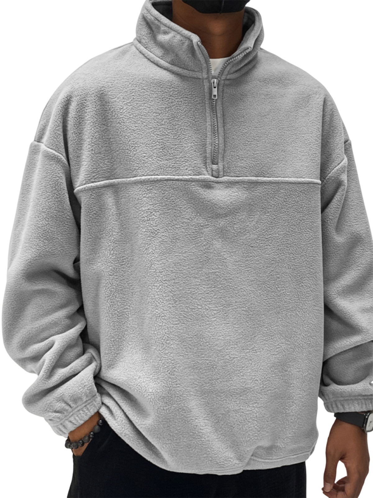 Men's Retro Fashion Lambswool Fabric Stand Collar Zipper Long-Sleeve Polo Shirt