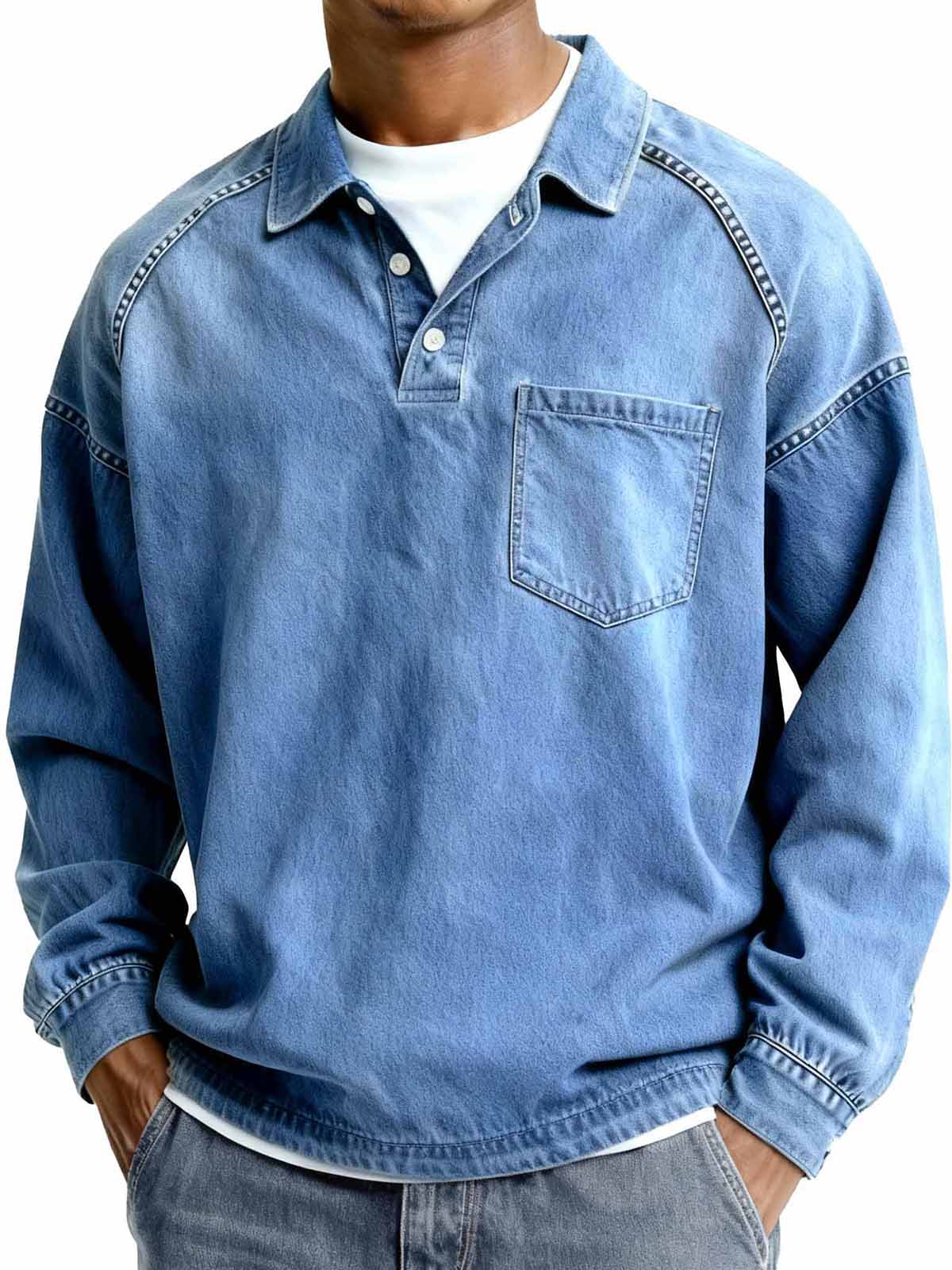 Men's Retro Collar Button Casual Long-Sleeve Polo Shirt