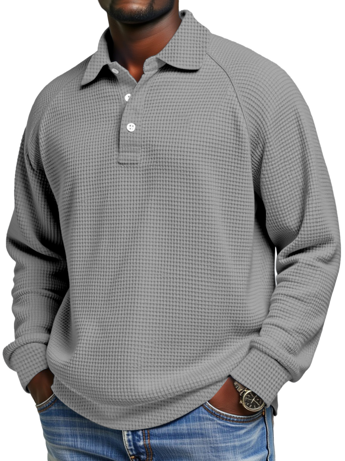 Men's Fashionable Casual Waffle Gown with Raglan Sleeves and Polo Shirt