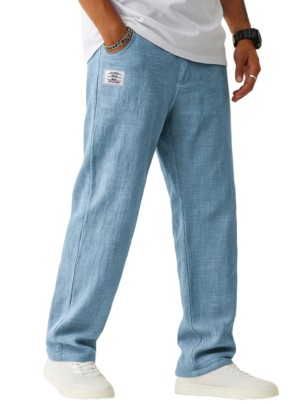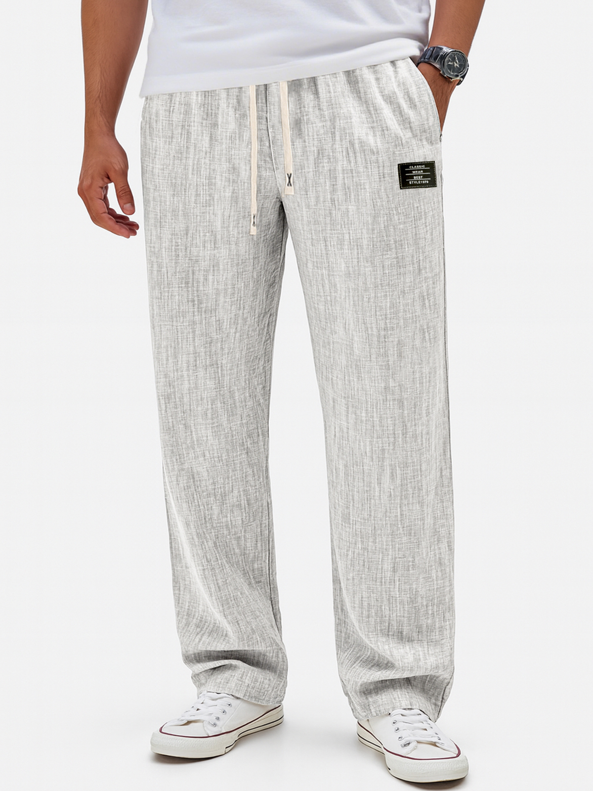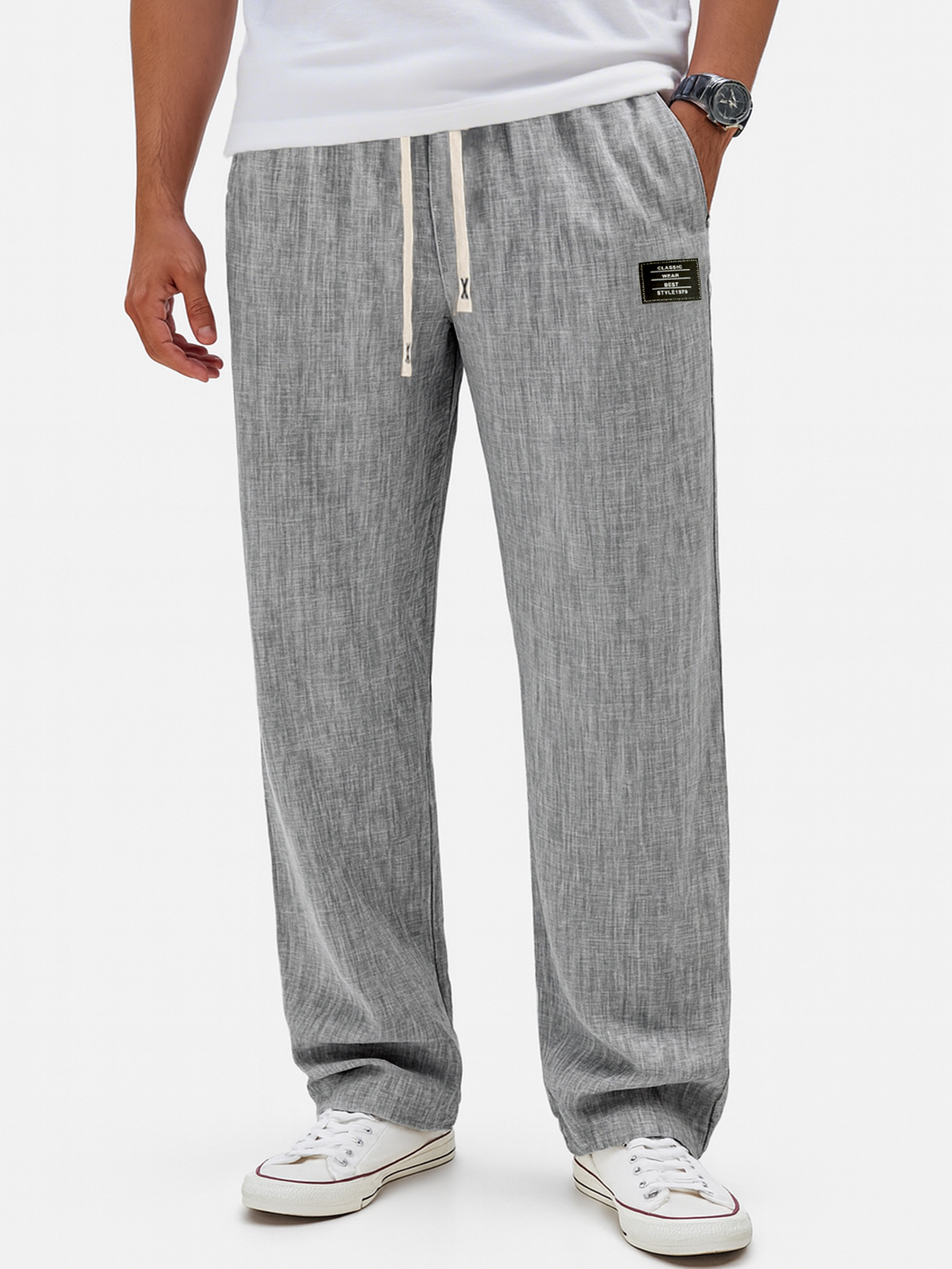 Men's Breathable Linen Casual Daily Pants with Embroidered Label