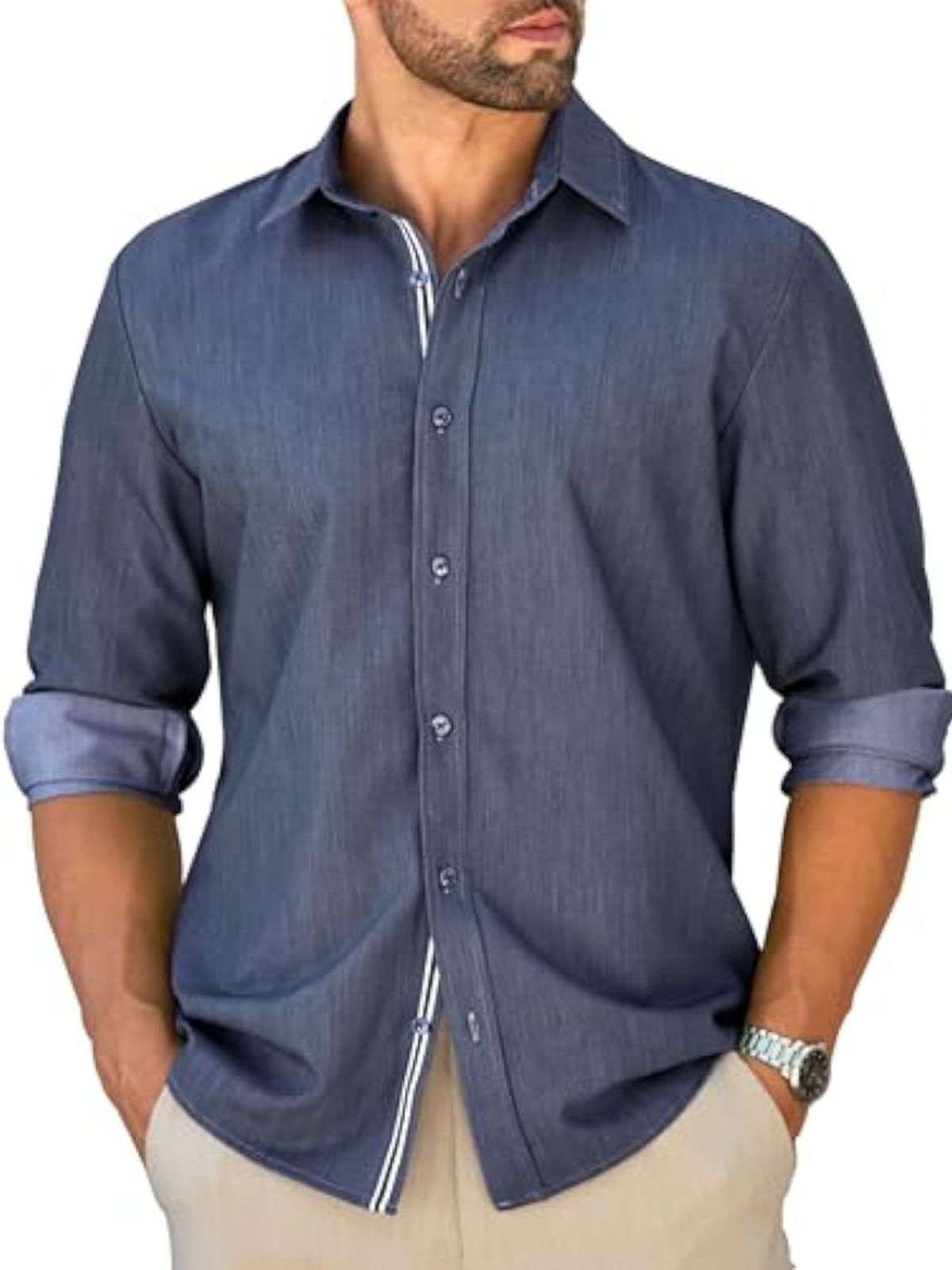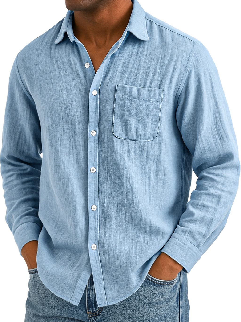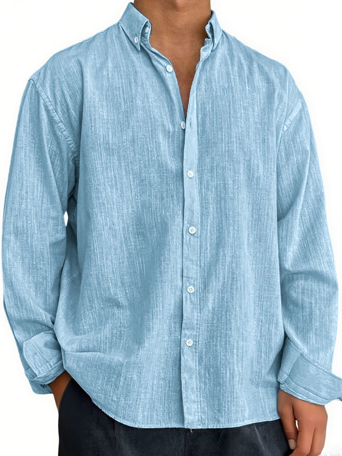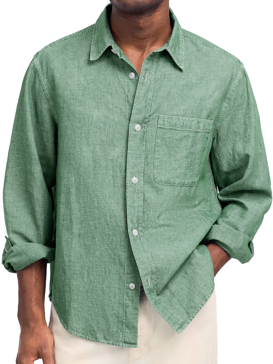 Men's Casual Linen Button-Down Long Sleeve Shirt