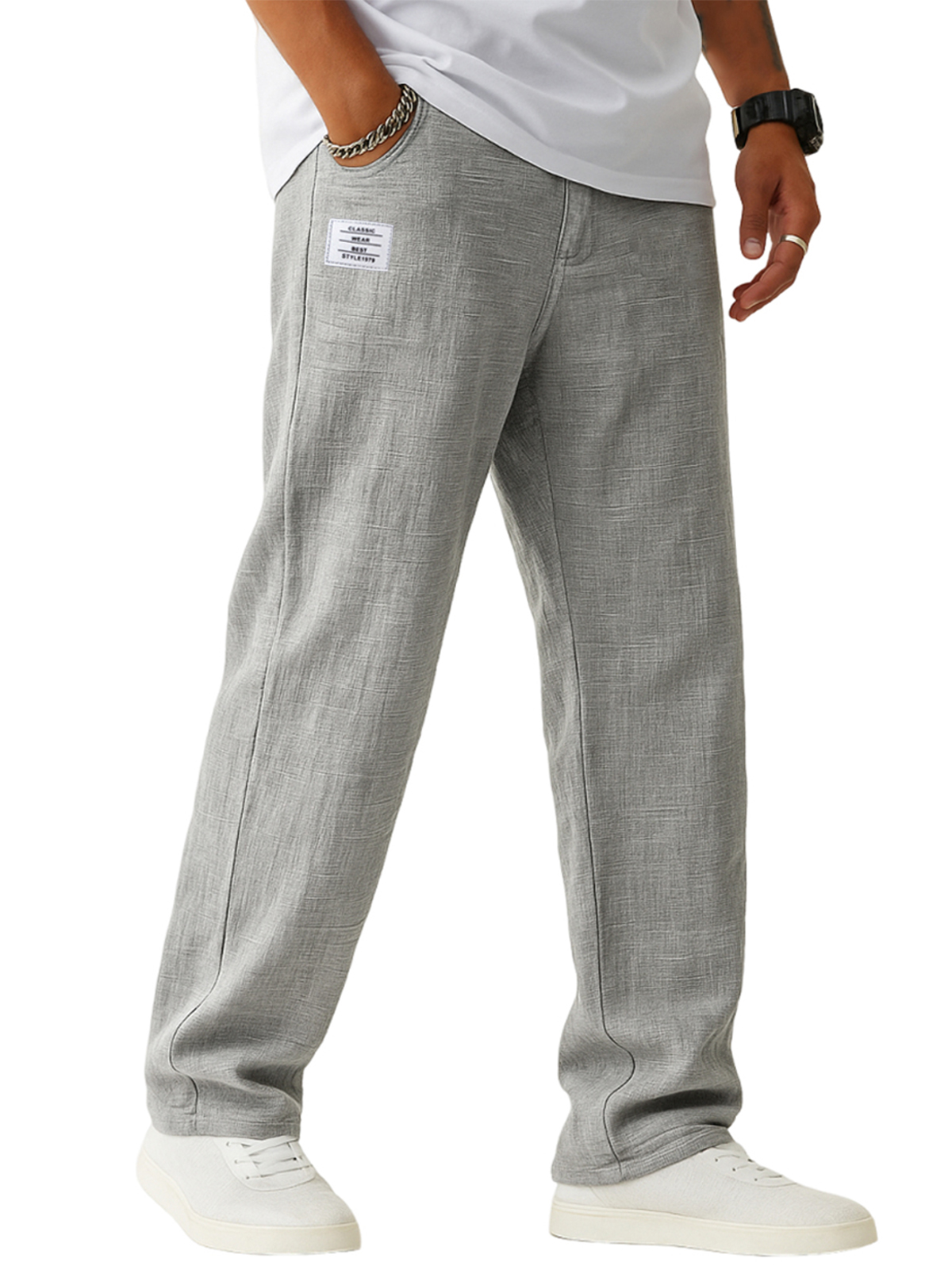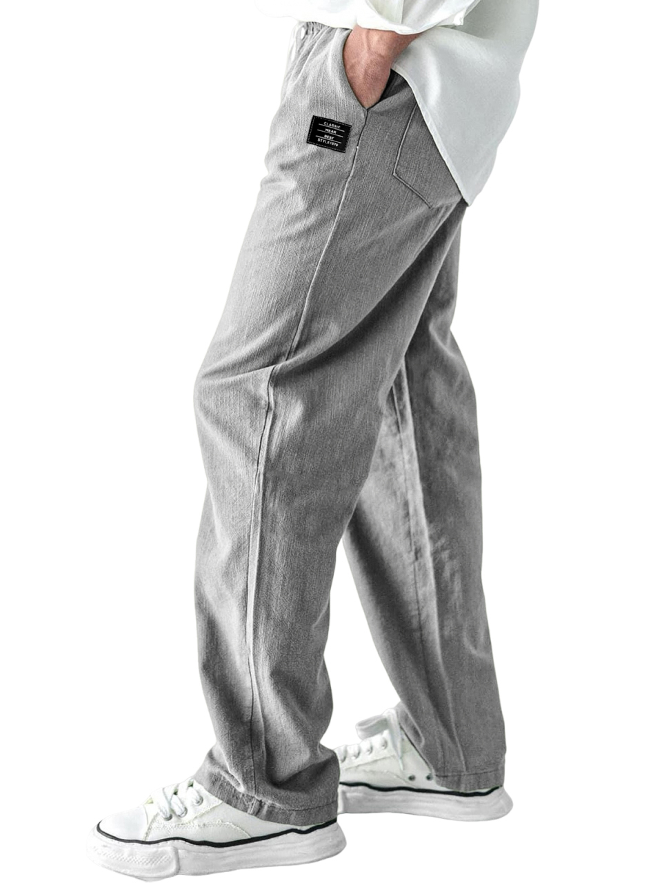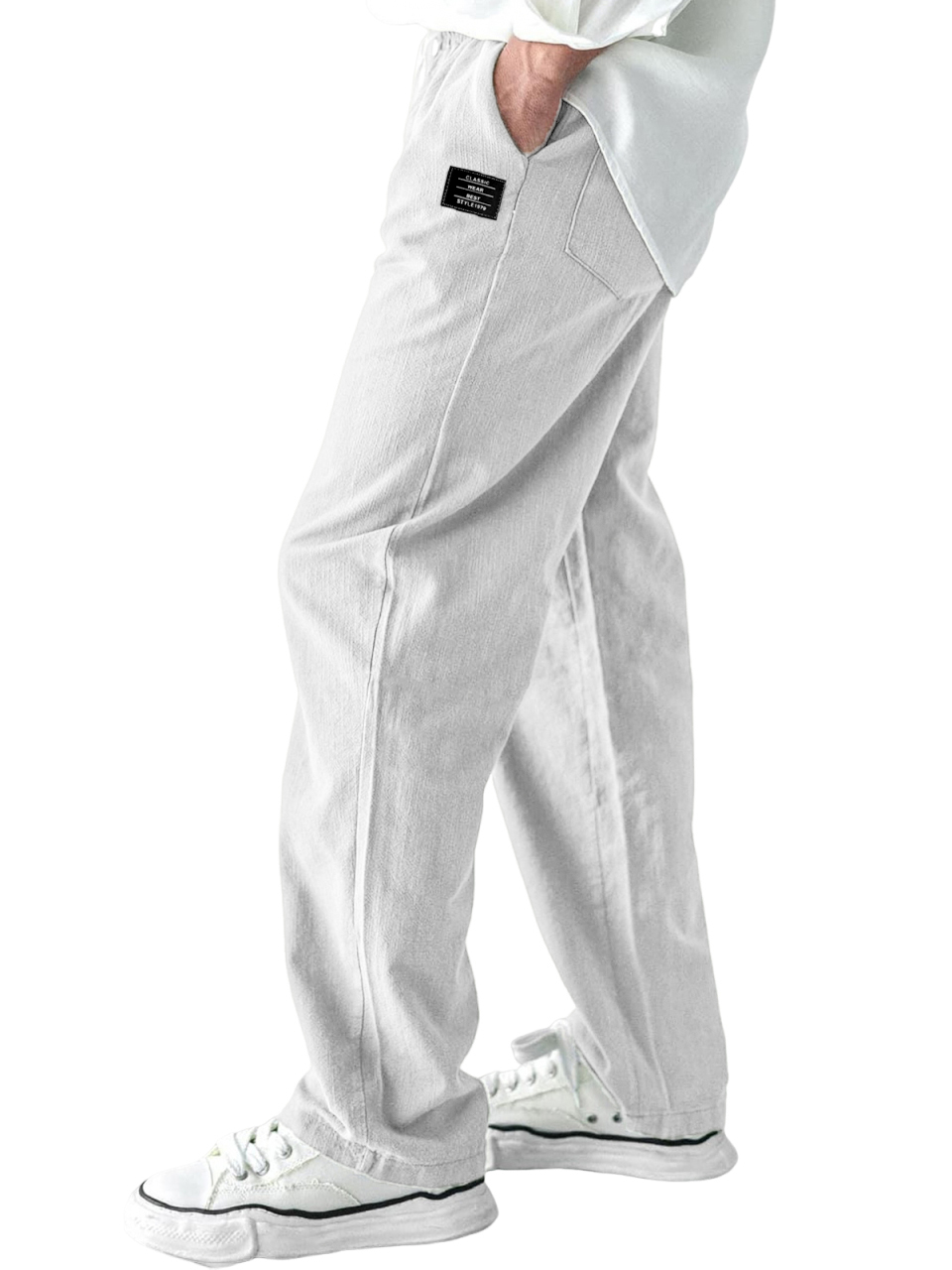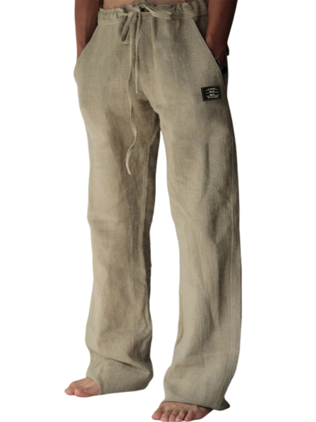 Men's Comfortable Linen Daily Trousers with Embroidered Label