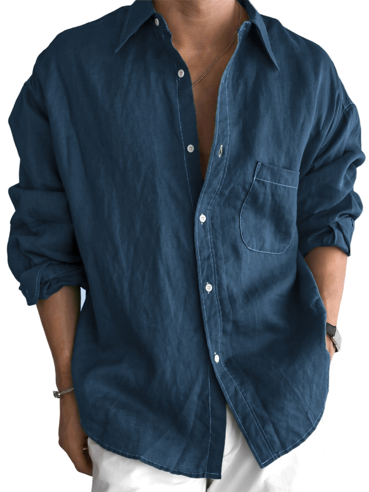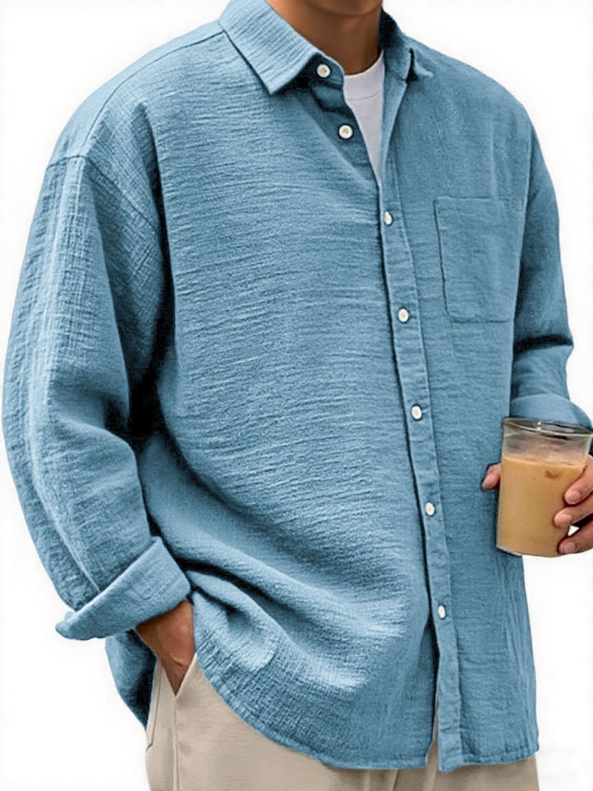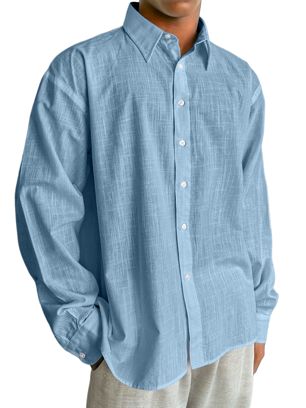 Men's Cotton And Linen Casual, Fashionable, Everyday Long-sleeved Shirt