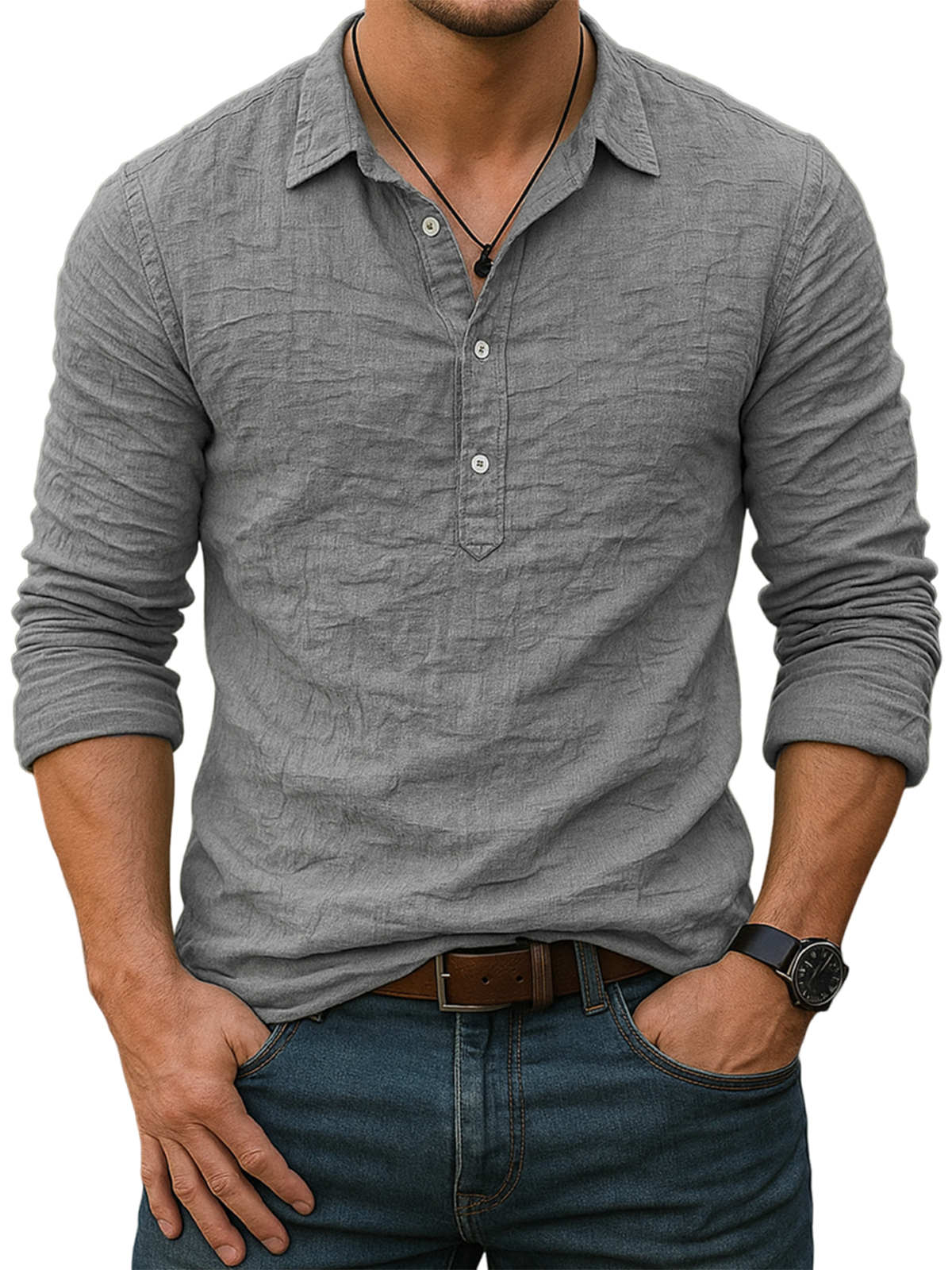 Men's Stylish Breathable Linen Casual Everyday Long Sleeve Shirt