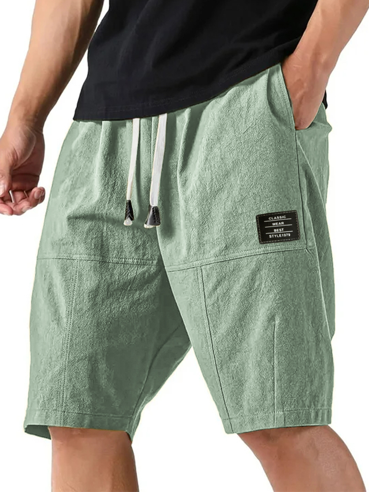 Men's Cotton Linen Stylish Casual Lace-up Shorts with Embroidered Label