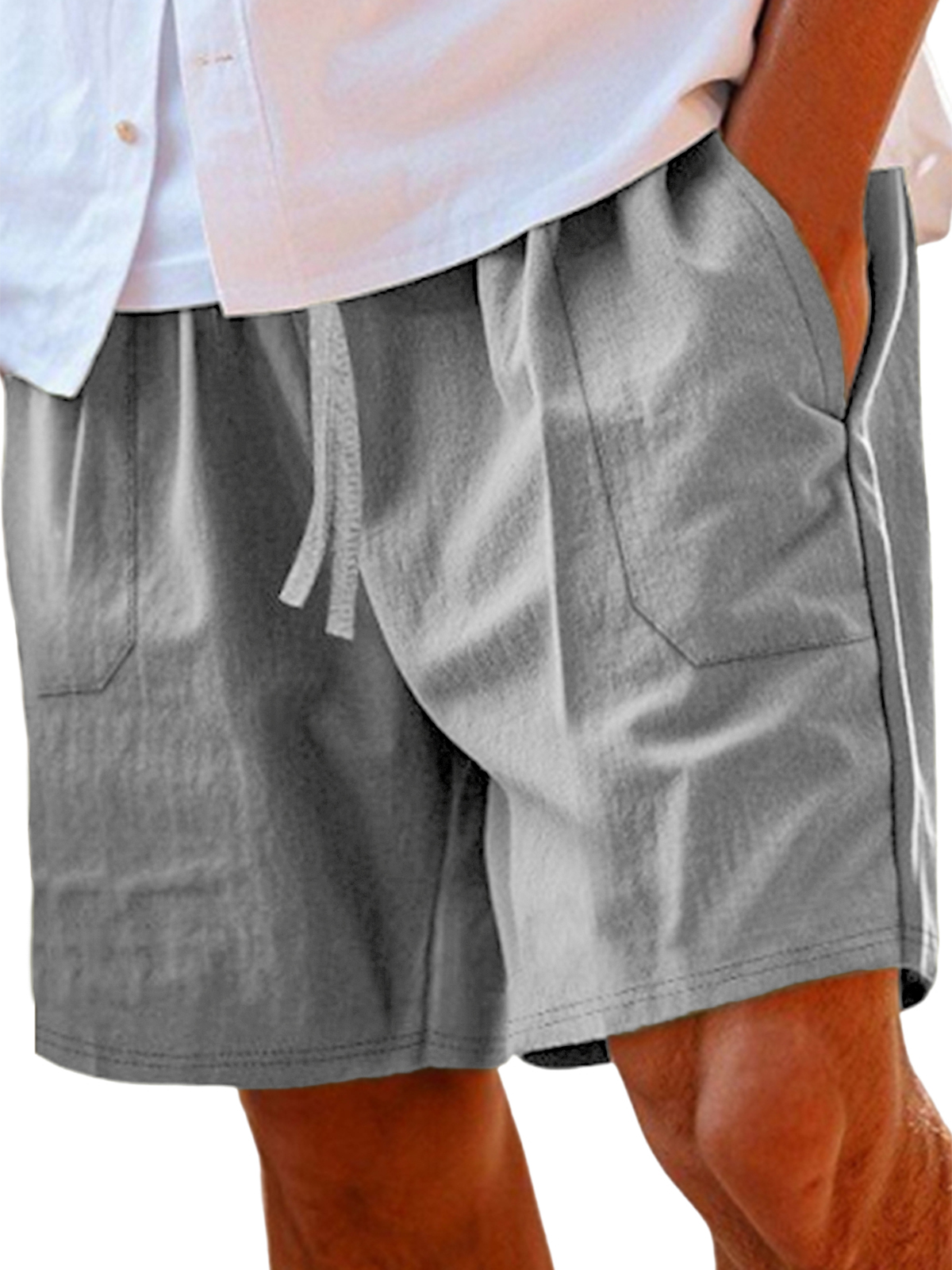 Men's Comfortable Linen Lace-Up Vacation Shorts with Side Pockets