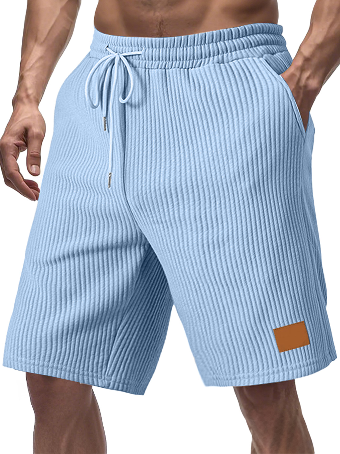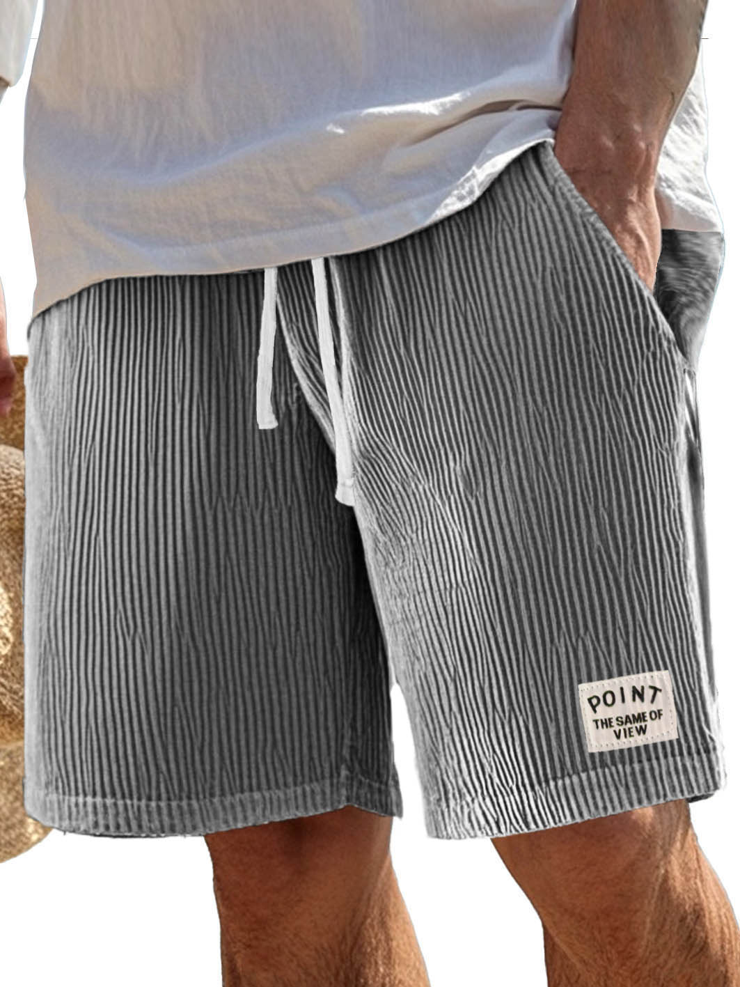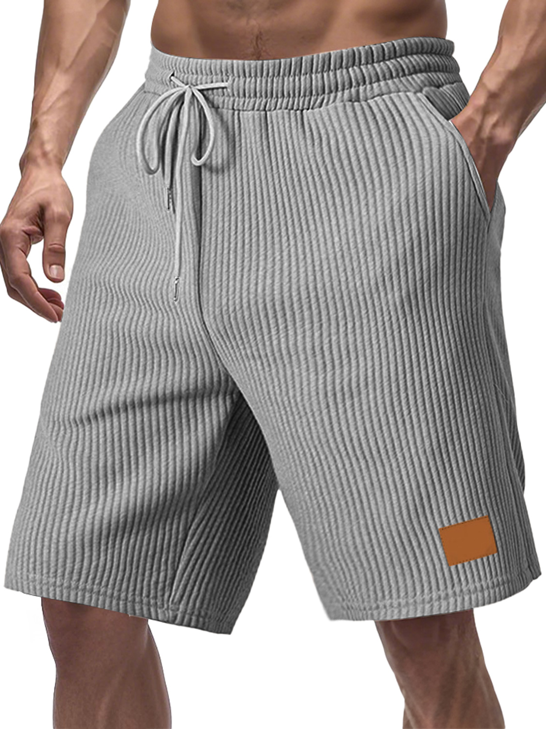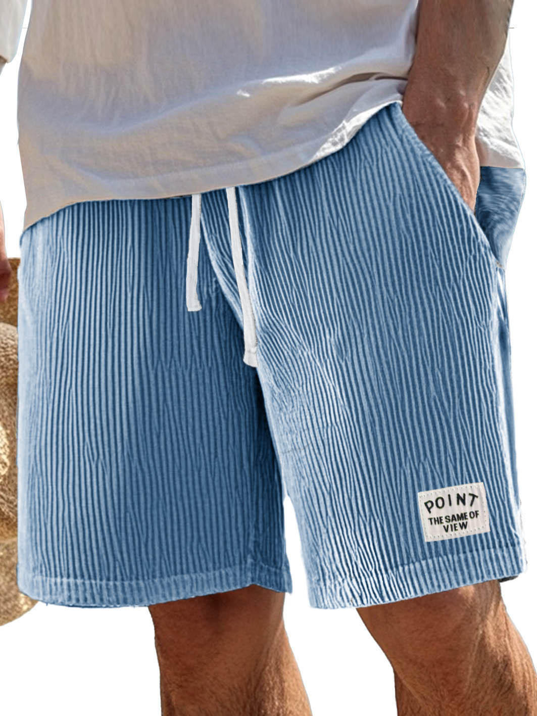 Men's Stylish Corduroy Simple Embroidered Label Flat Seam Pocket Lace-up Versatile Shorts