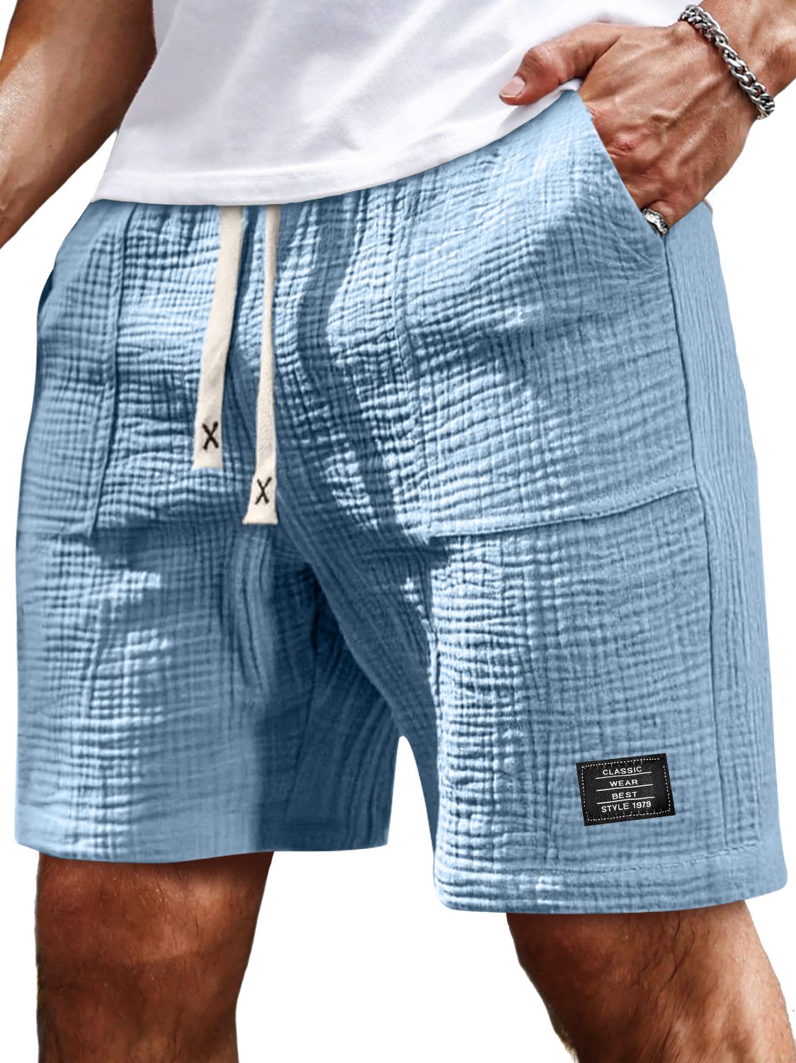 Men's Stylish Wrinkled Textured Multi-pocket Lace-up Casual Shorts