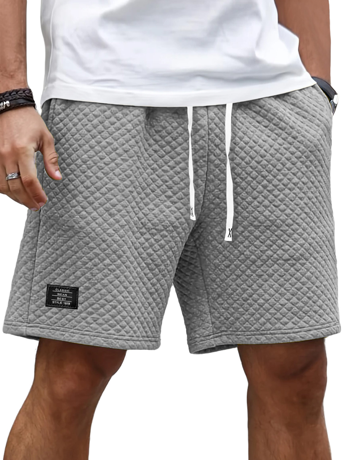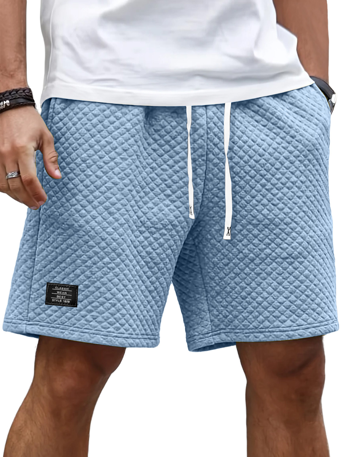 Men's Soft Waffle Simple Embroidered Logo Stylish Lace Up Everyday Casual Shorts