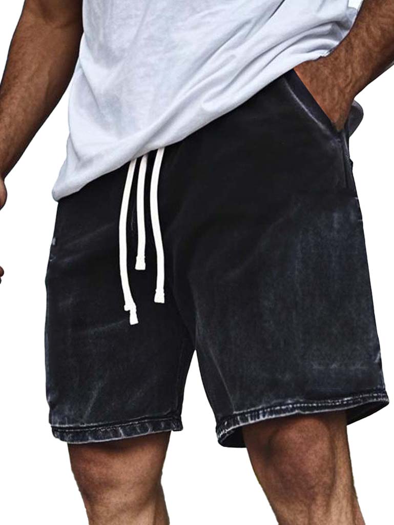 Men's Vintage Dyed Distressed Casual Beach Vacation Elastic Waist Shorts