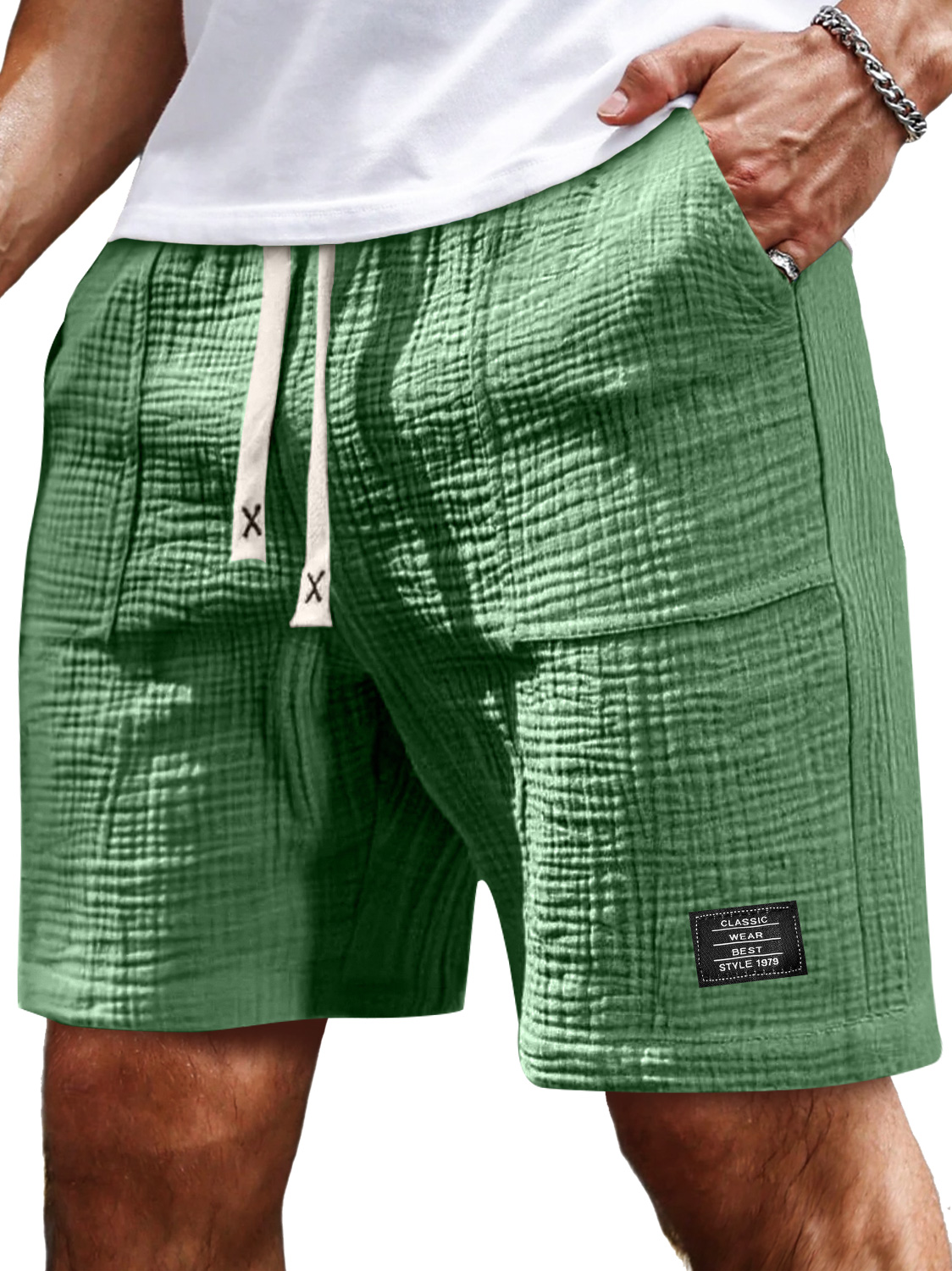 Men's Comfort Crepe Soft Simple Embroidered Label Casual Lace Up Everyday Shorts