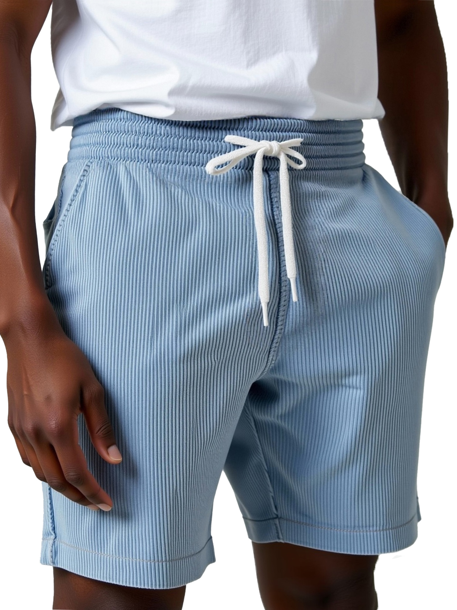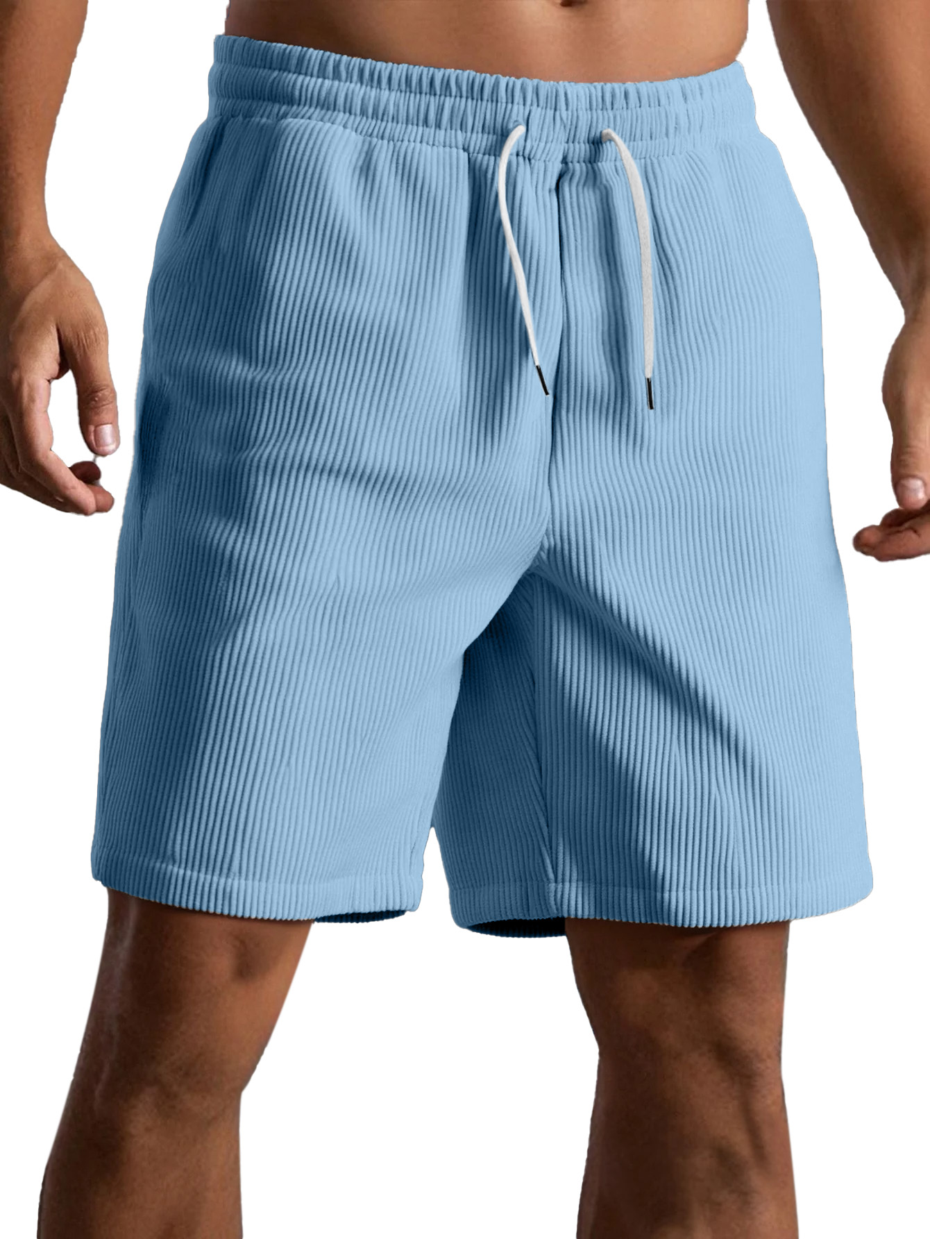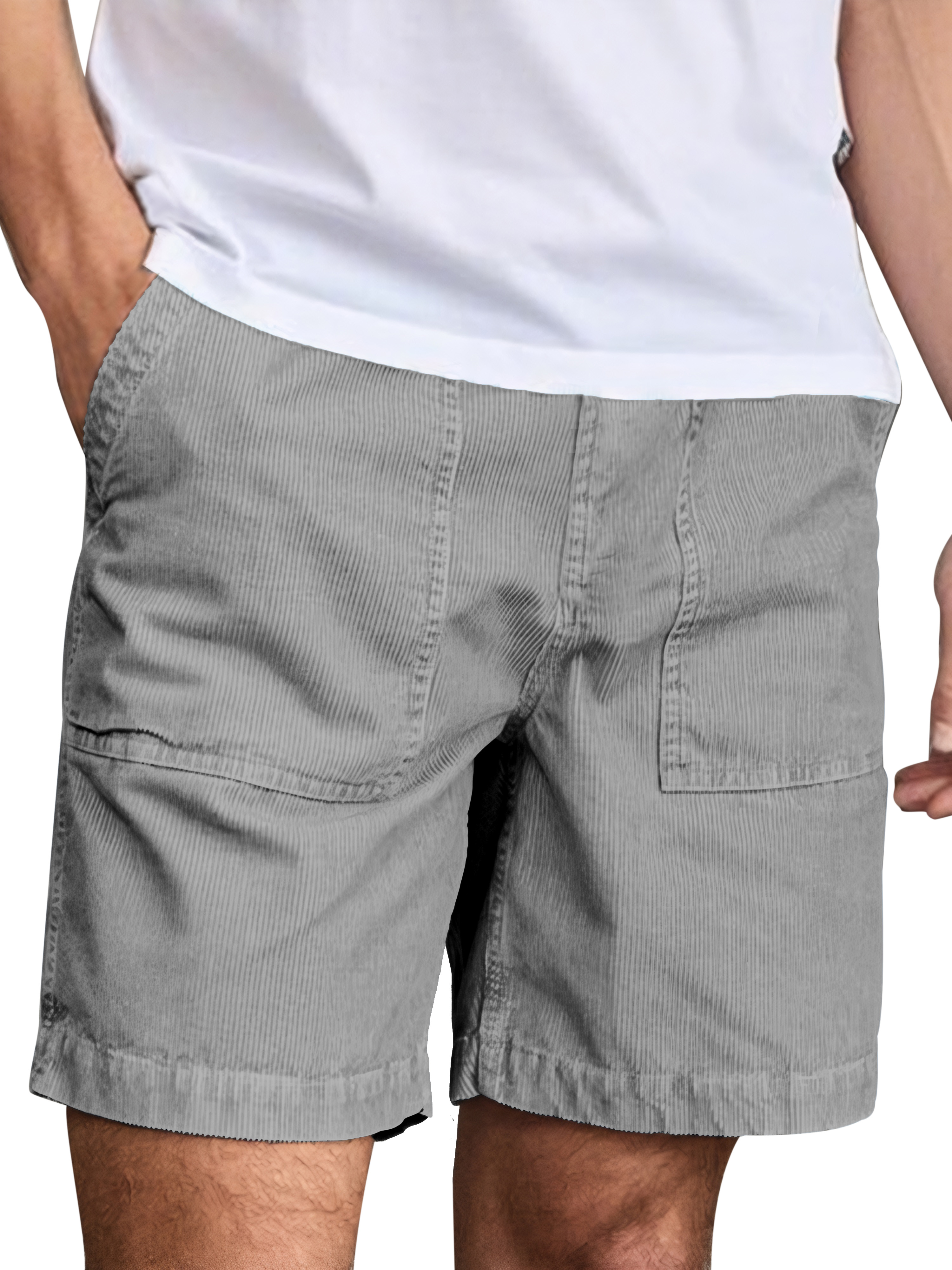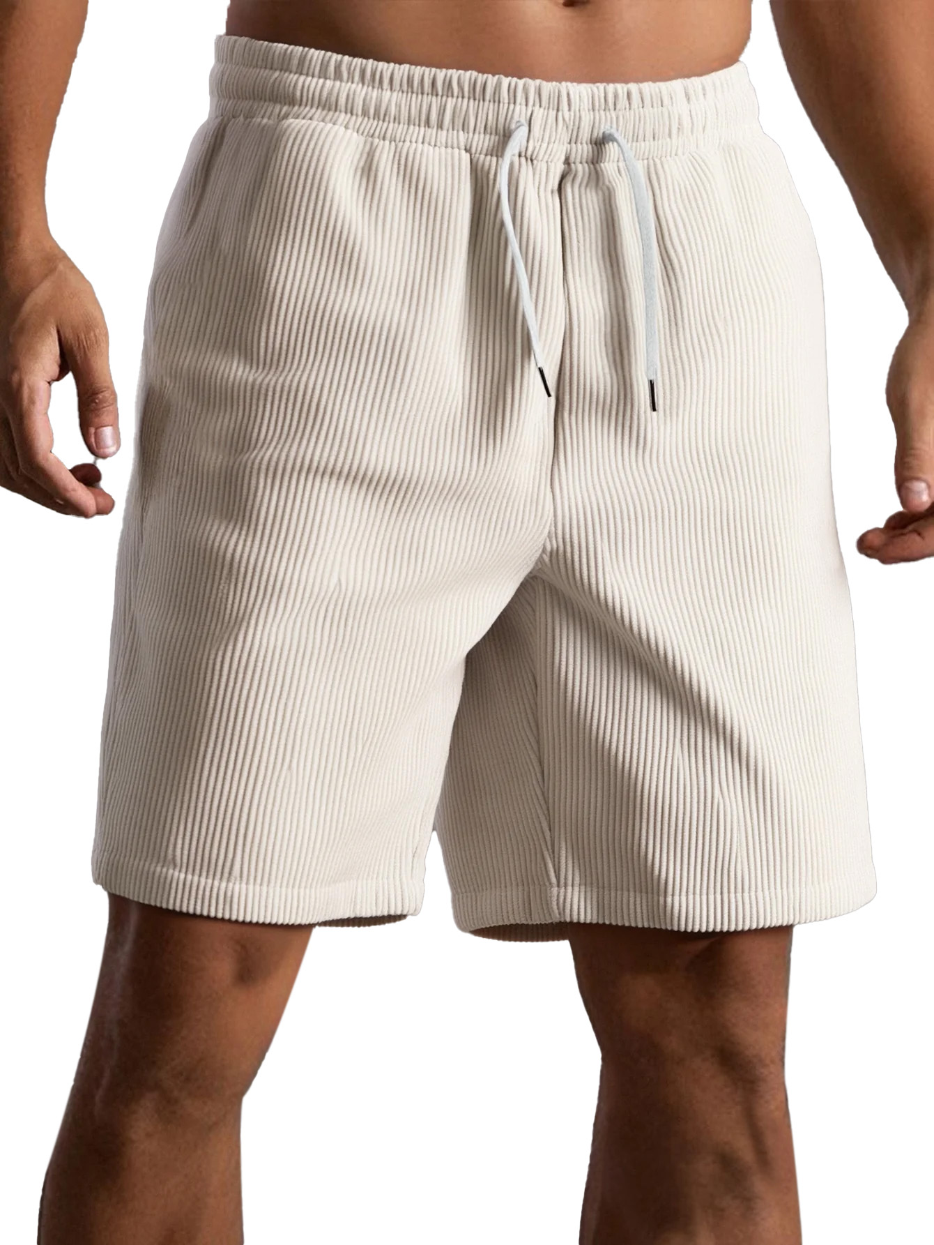 Men's Fashion Corduroy Casual Everyday Elastic Waist Drawstring Shorts With Side Pockets