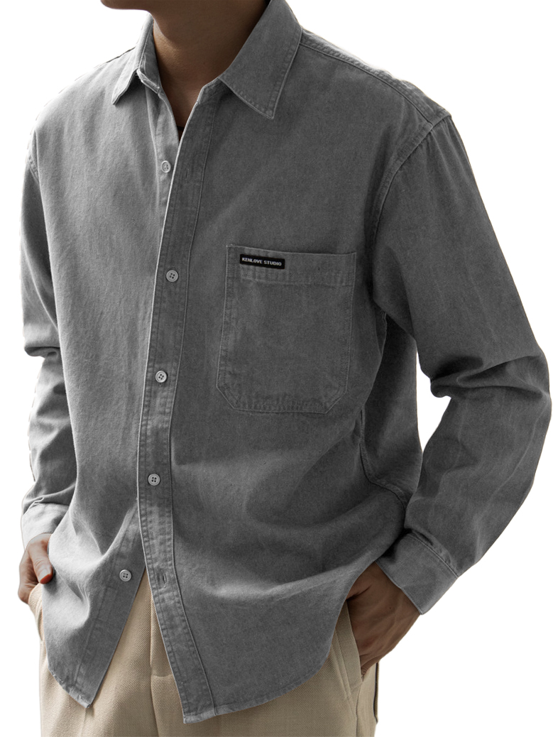 Men's Basic Vintage Washed Pocket Logo Long Sleeve Shirt
