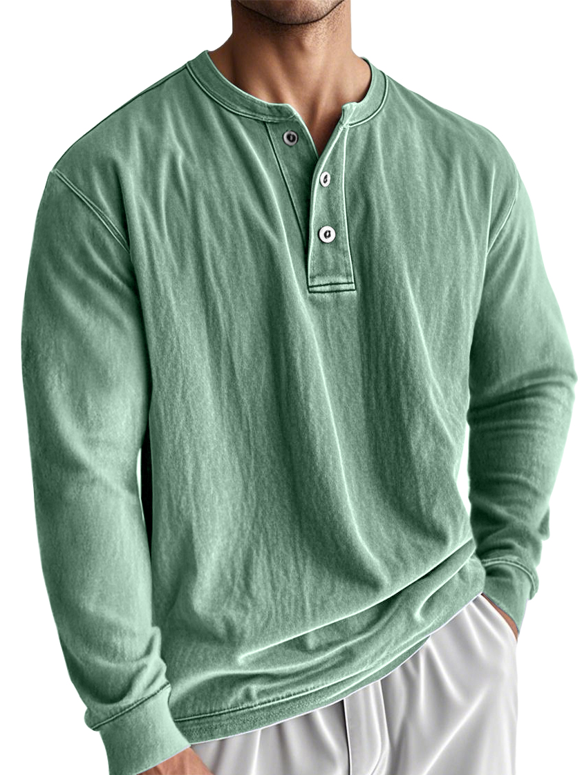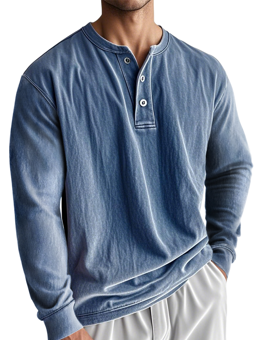 Men's Washed, Distressed, Vintage Casual Henley Shirt