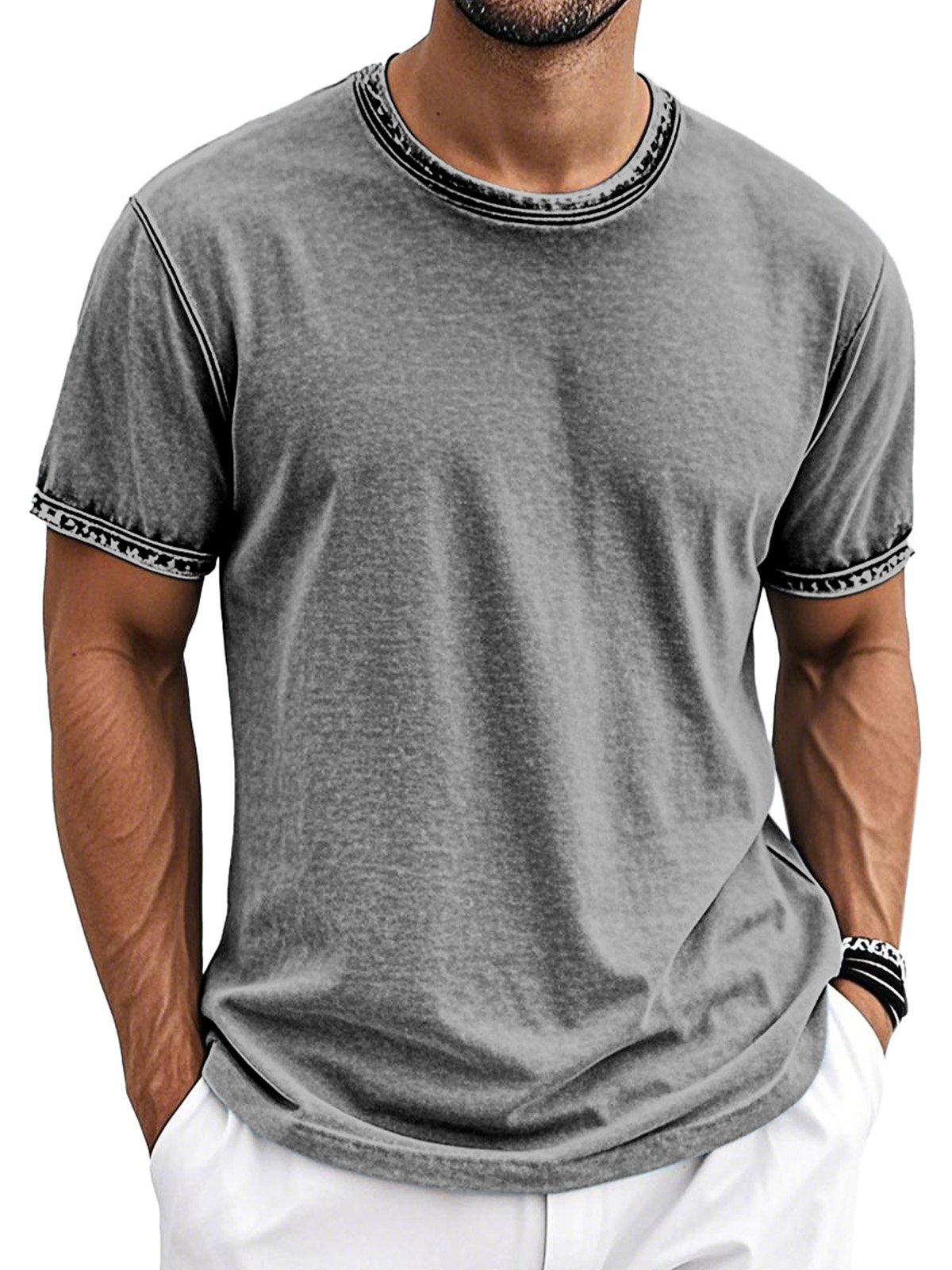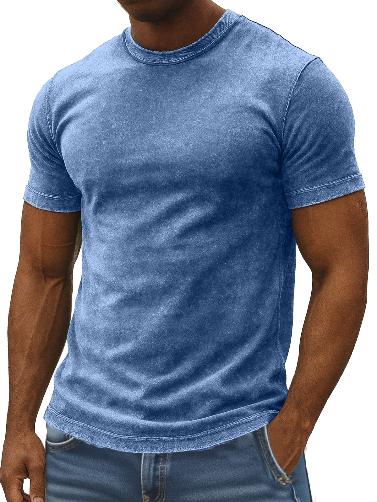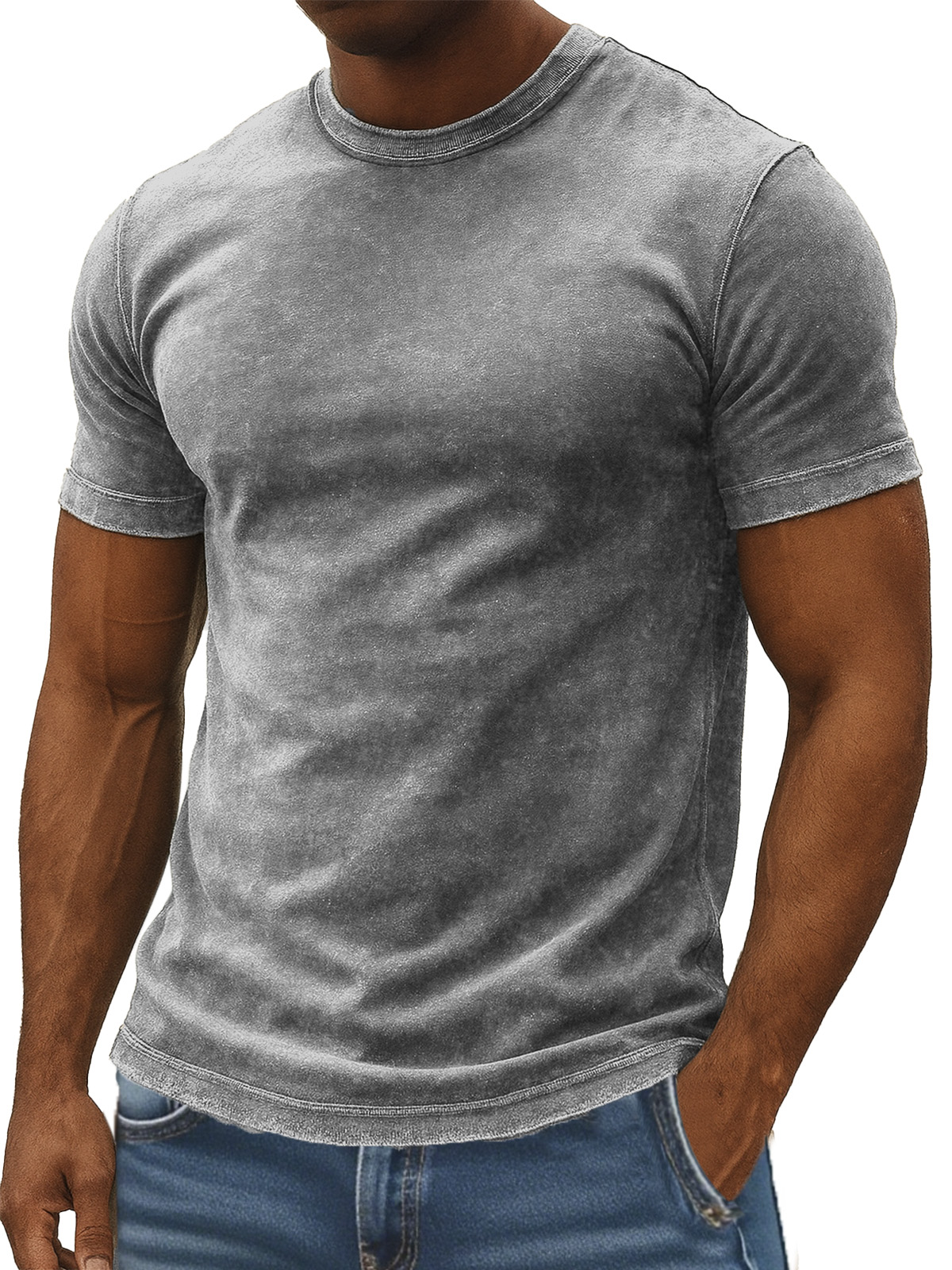 Men's 100% Cotton Retro Washed And Distressed Daily Slim Fit Short-sleeved T-shirt