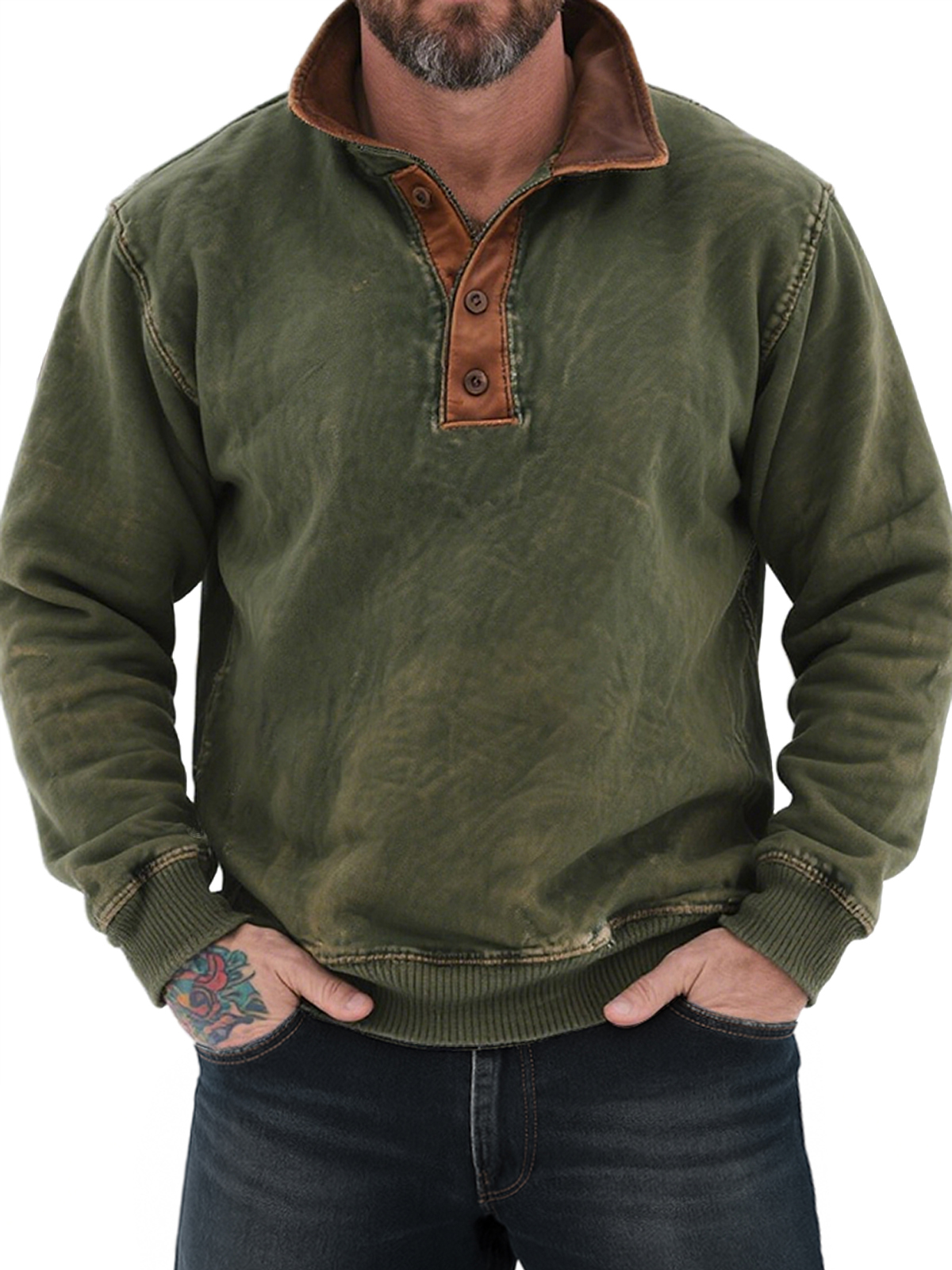 Men's Vintage Distressed Colorblock Lapel Casual Sweatshirt