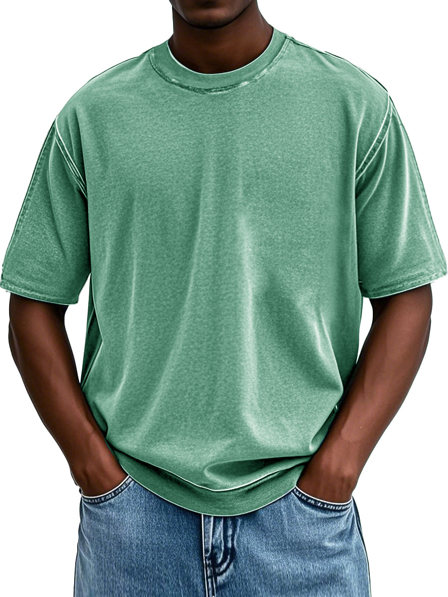 Men's Retro Cotton Washed Round Neck Short-sleeved T-shirt