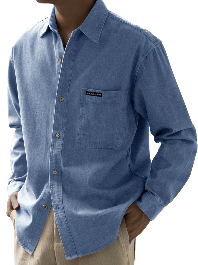 Men's Vintage Cotton Washed Lapel Button Casual Long Sleeve Polo Shirt
