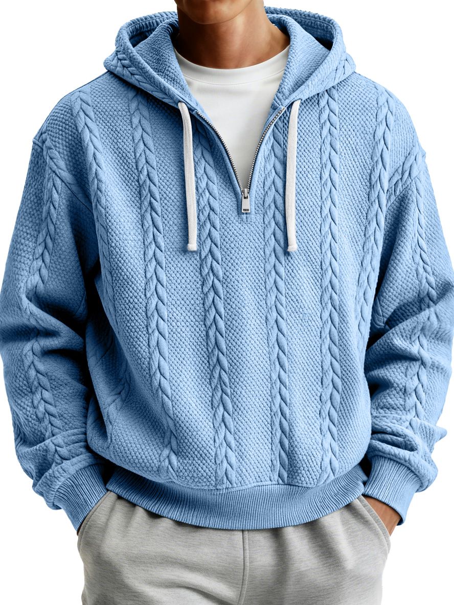 Men's Stylish Casual Waffle Fabric Half-zip Hooded Sweatshirt