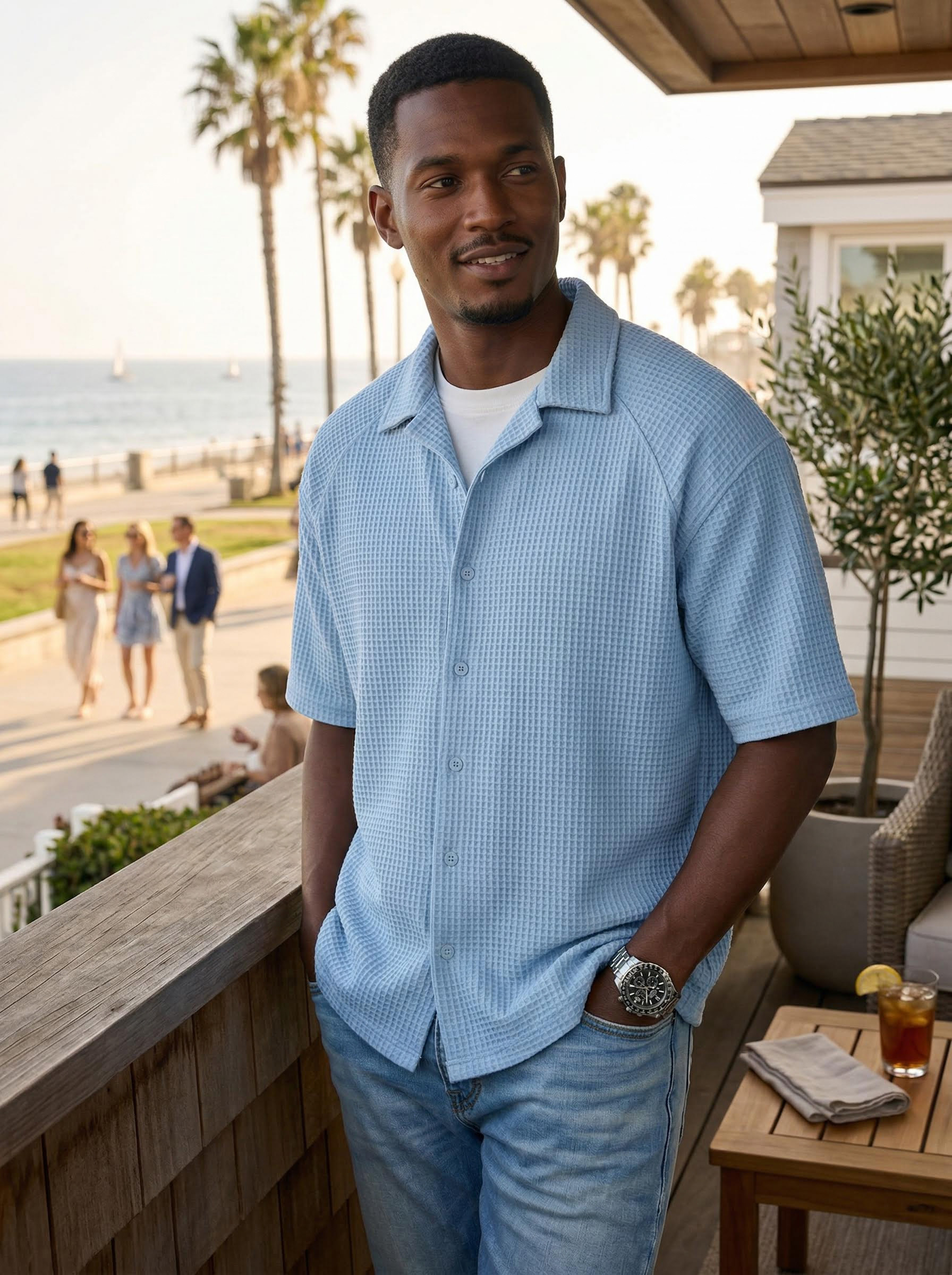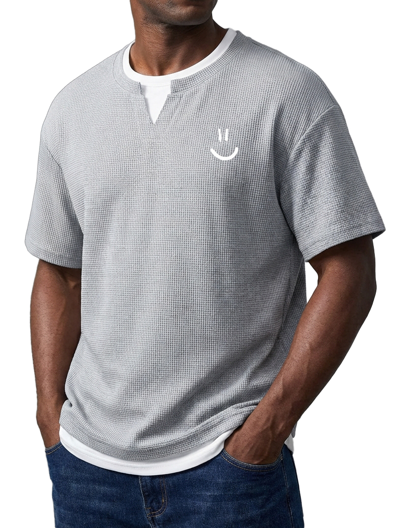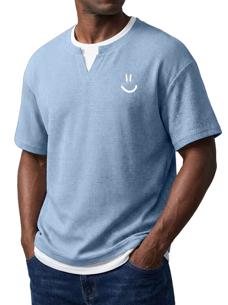 Men's Everyday Waffle-knit Deconstructed Casual Short-sleeved Henley Shirt