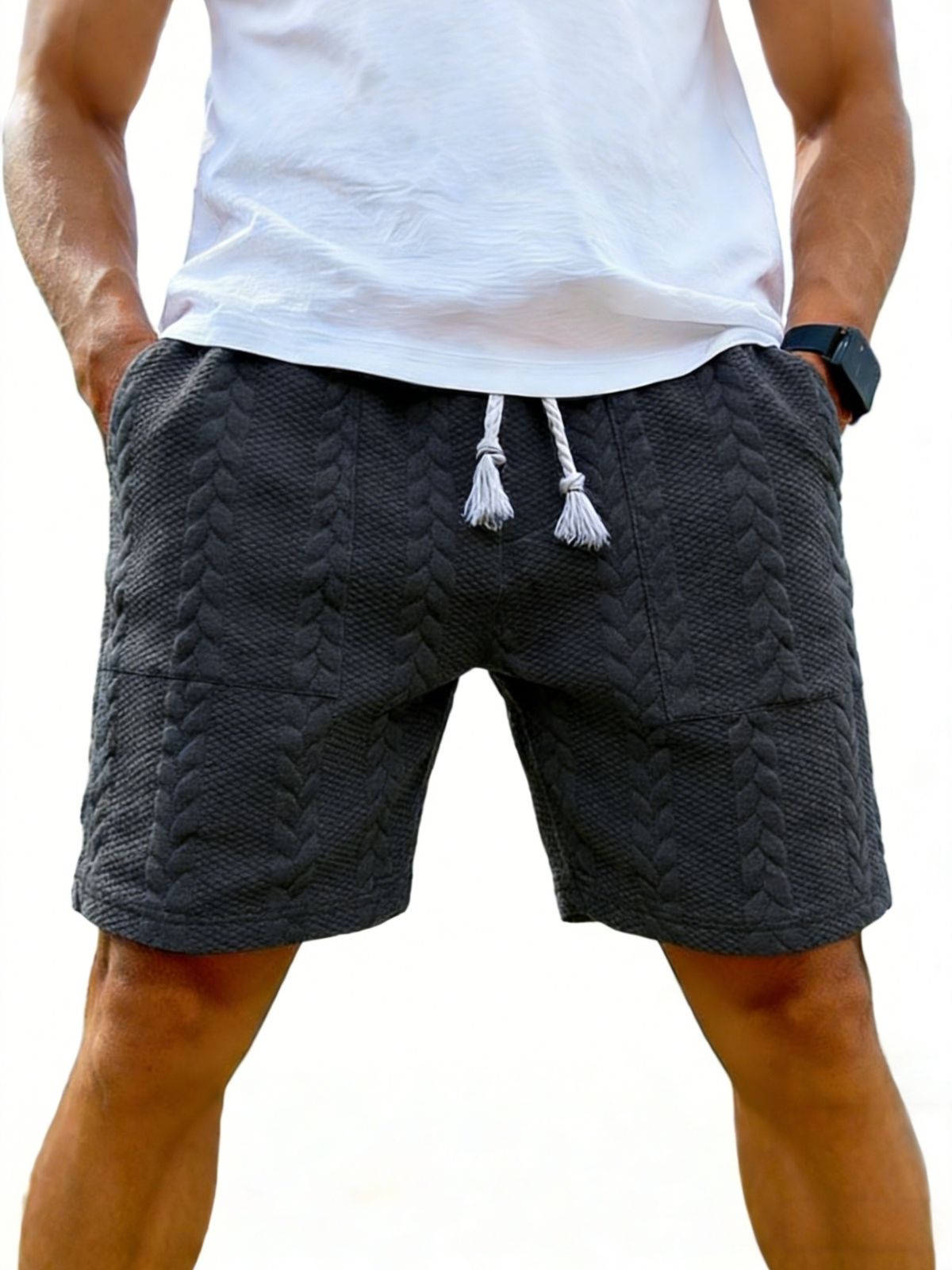 Men's Casual Loose-fitting Jacquard Textured Embroidered Logo Shorts