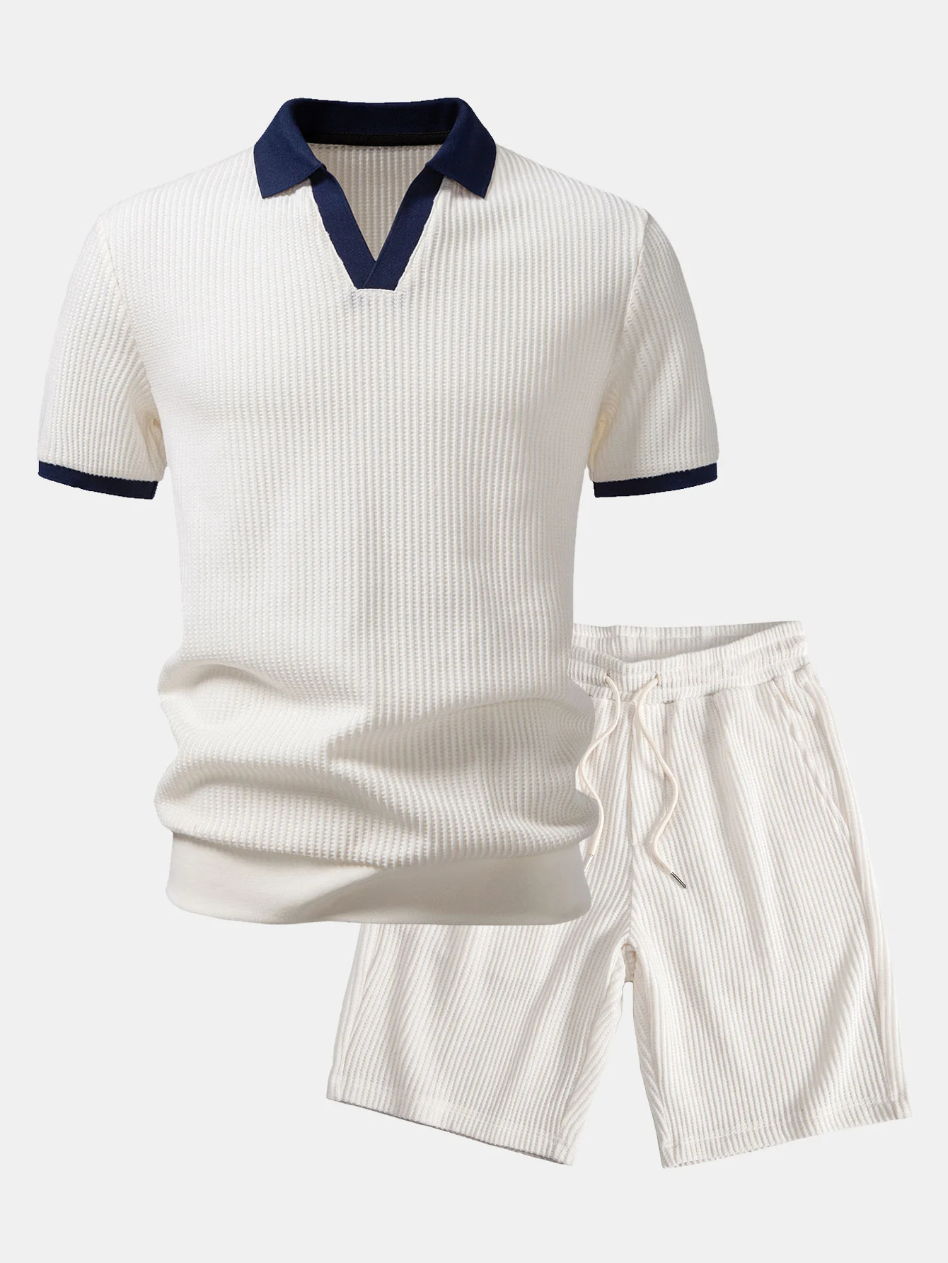 Men's Striped Short-Sleeve Shirt and Pants Two-Piece Casual Set OOTD