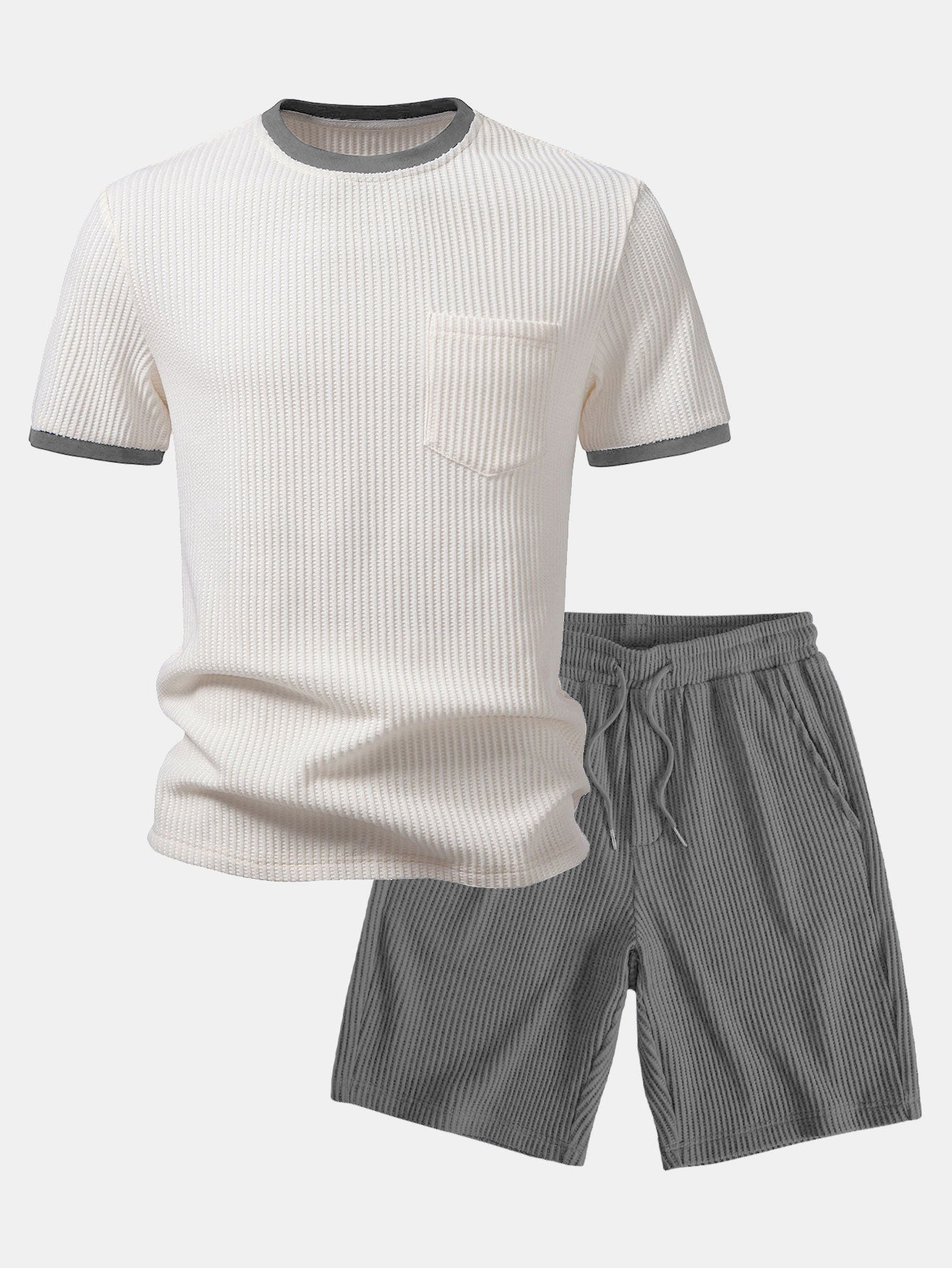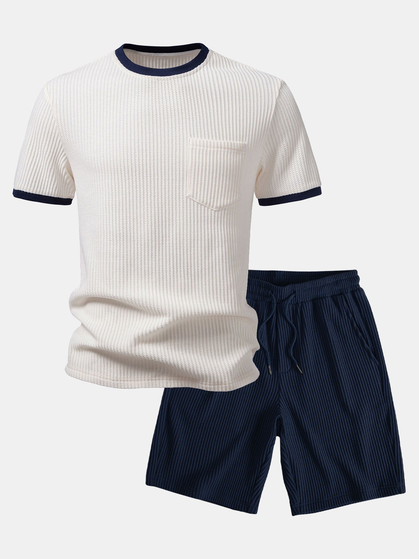 Men's Waffle Color Block Deconstructed Casual Short-Sleeve T-Shirt