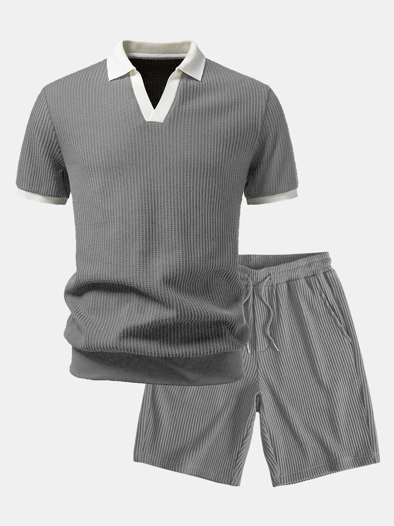 Men's Simple Daily Waffled Raglan Sleeve Lap Short Sleeve Shirt