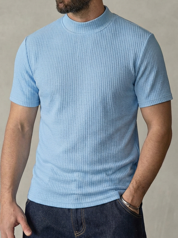 Men's High-Neck Slim Fit Casual Short-Sleeve T-Shirt