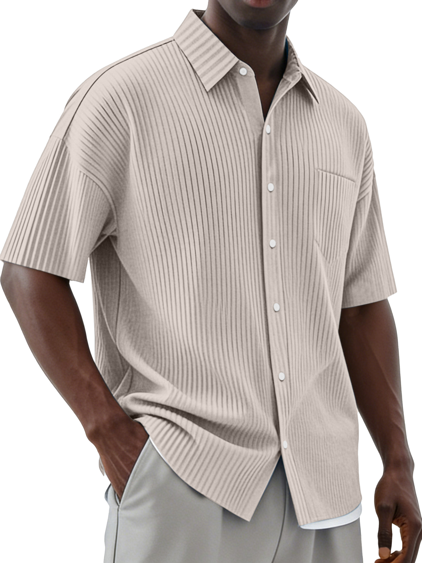 Men's Daily All-match Solid Color Pleated Short-sleeved Casual Shirt
