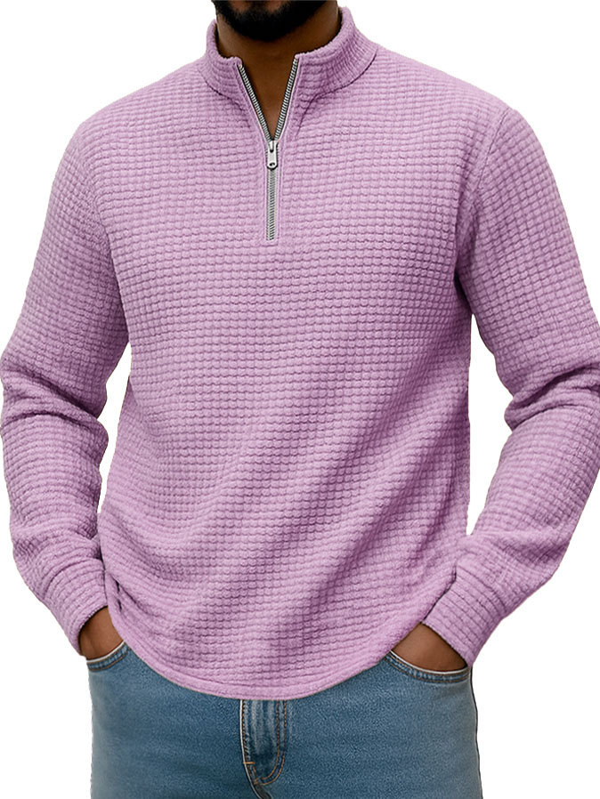 Men's Stylish Casual Corn-patterned Corduroy Fabric Stand-up Collar Half-zip Long-sleeved Sweatshirt
