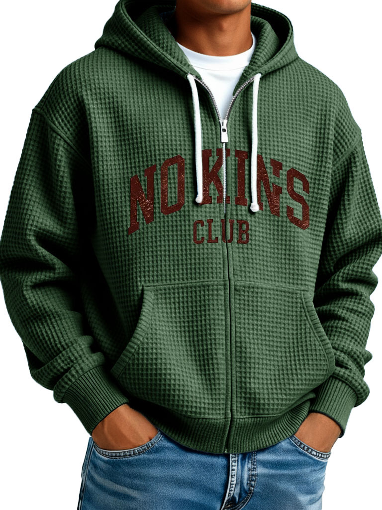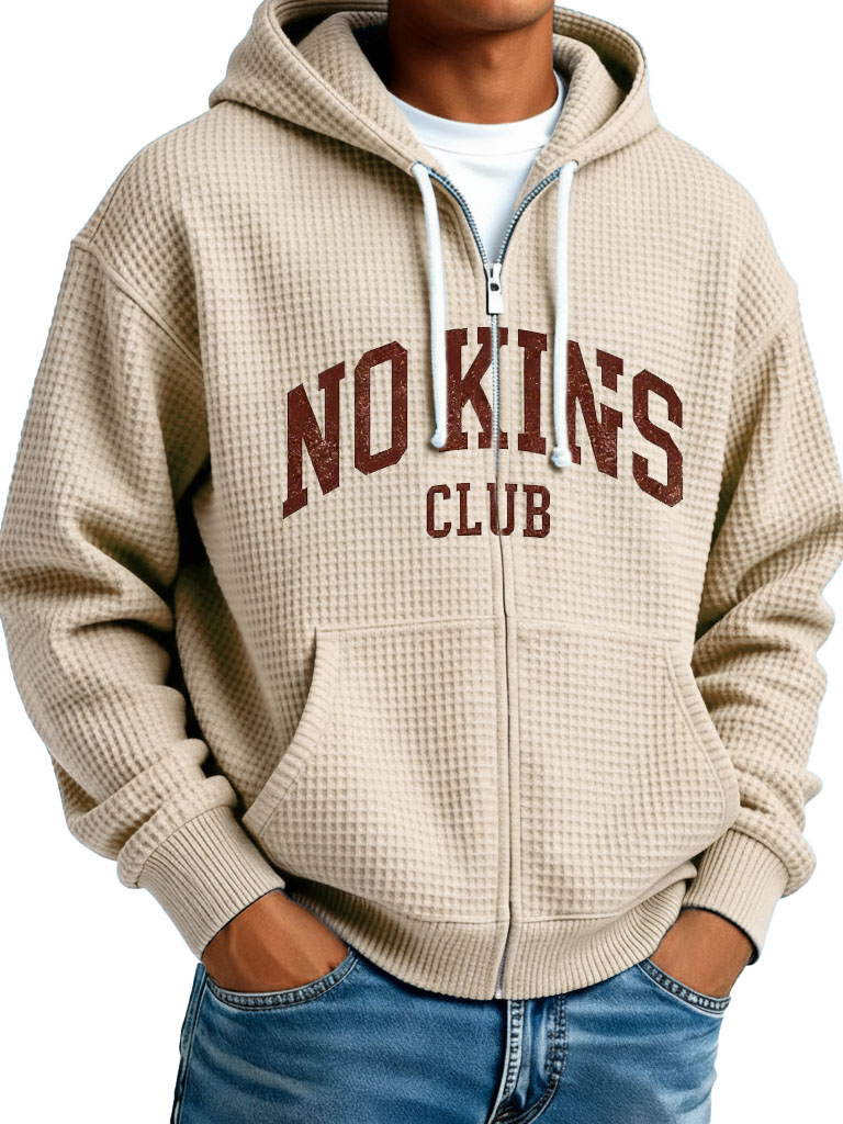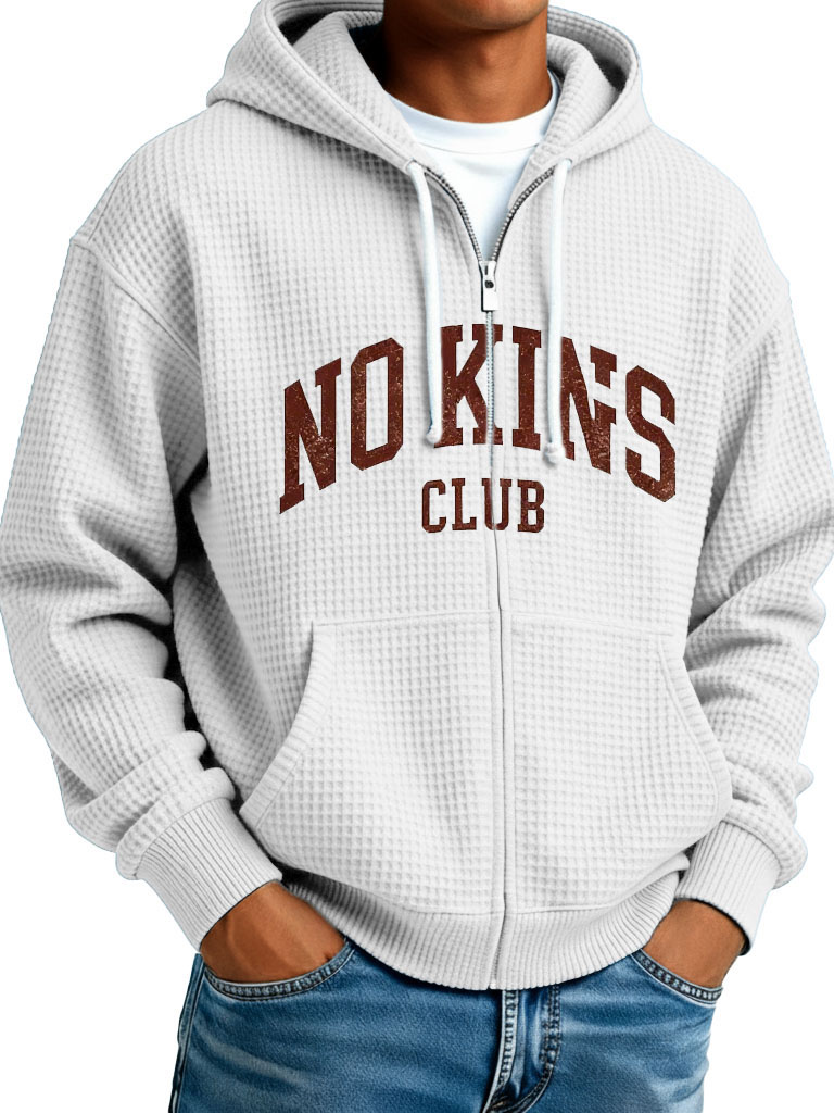"no Kings" Letter-printed Waffle Fabric Pockets Long-sleeved Hoodie