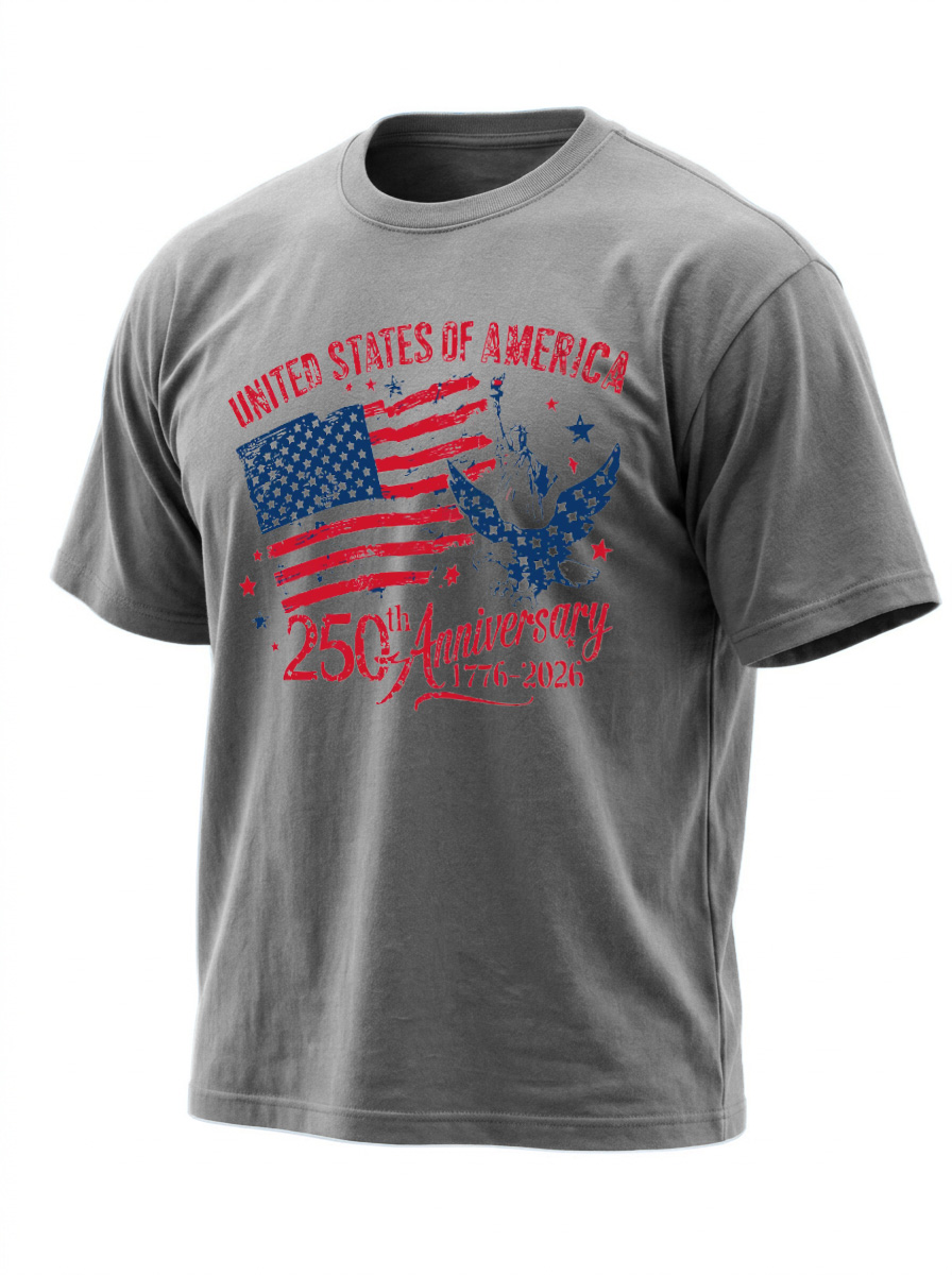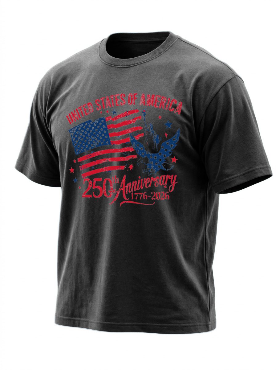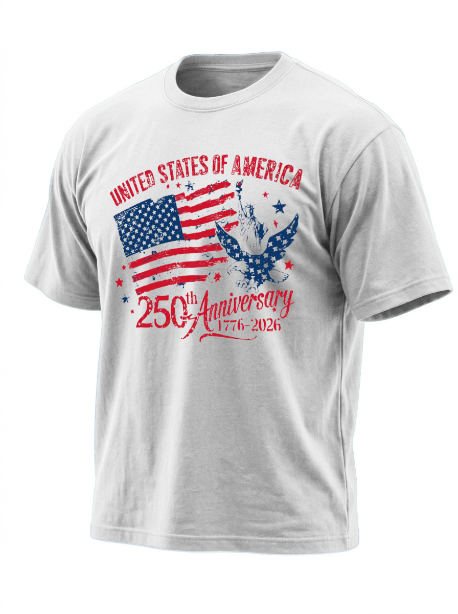 250th Anniversary Of American Independence Solid Color Round Neck Short Sleeve T-shirt