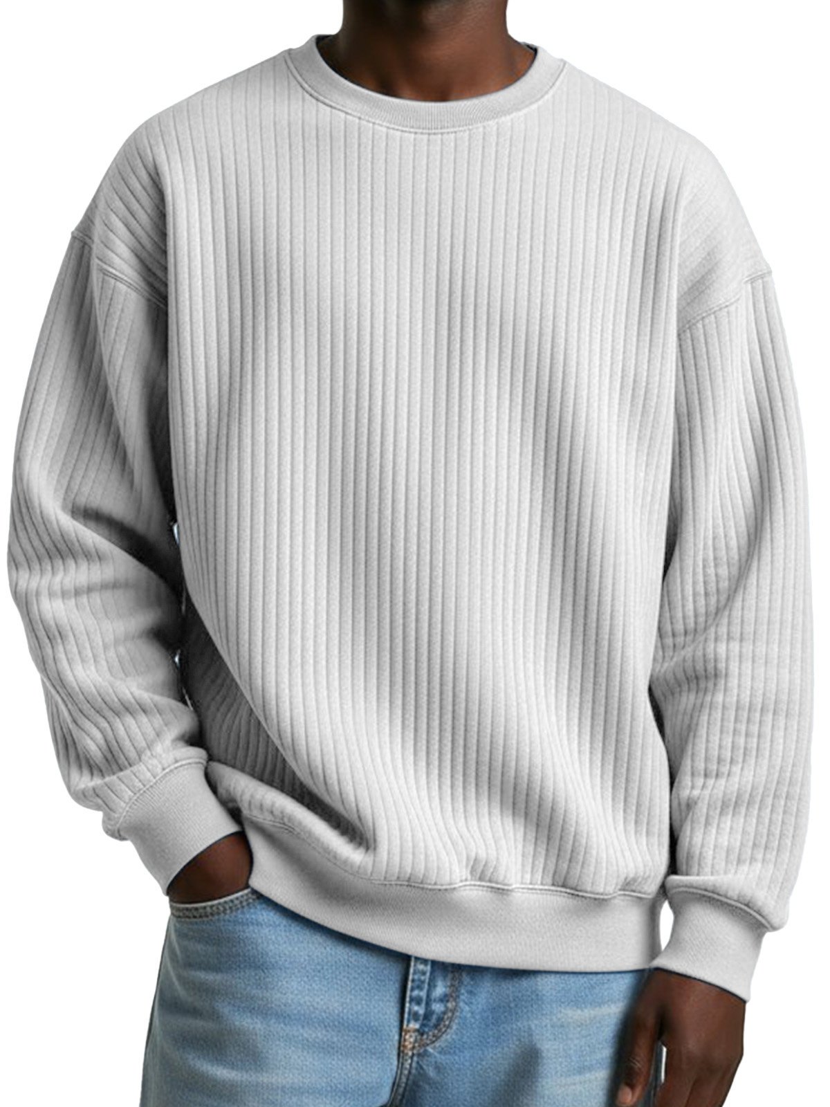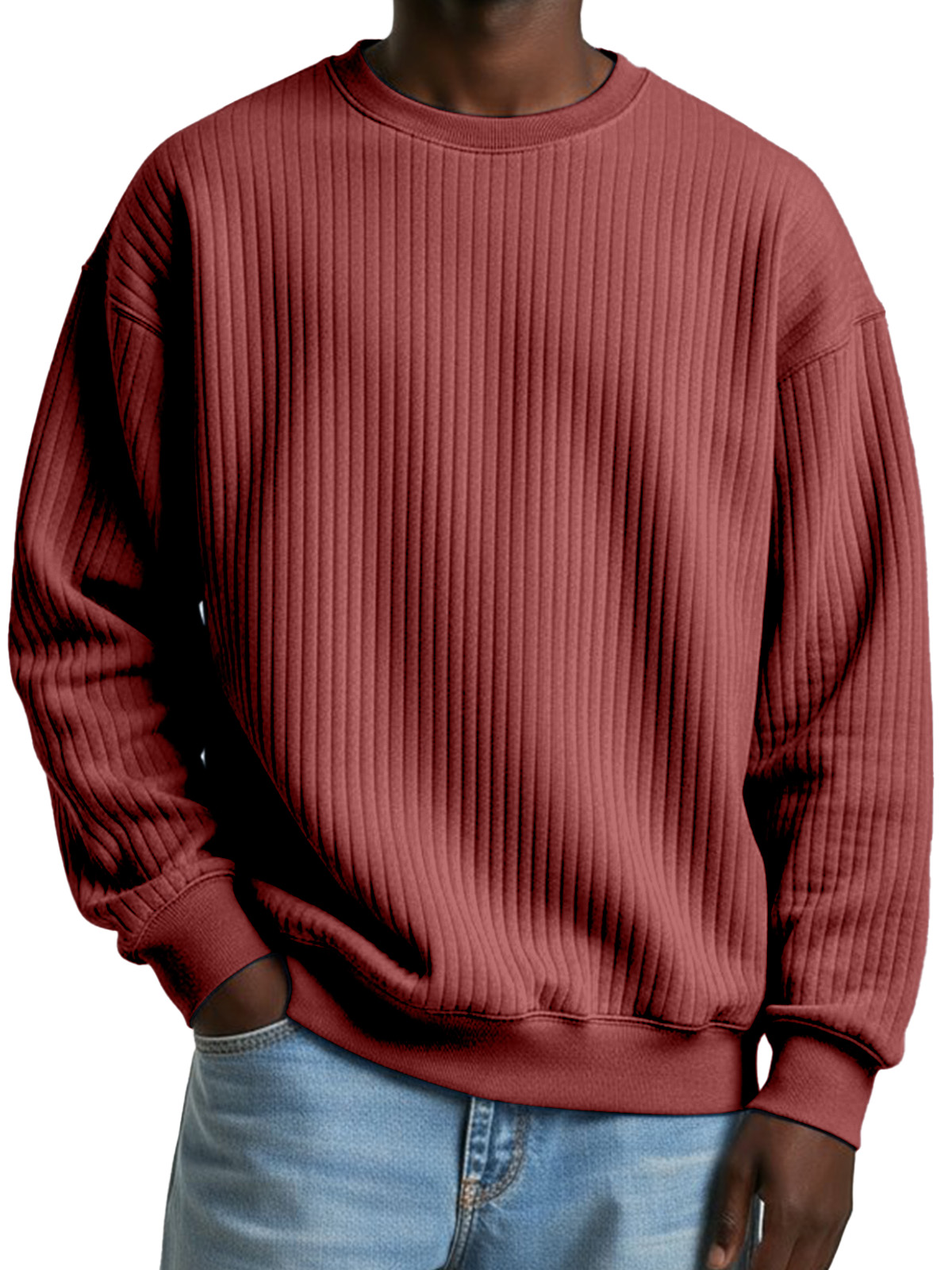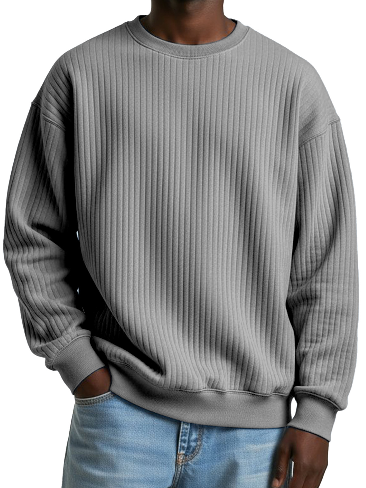 Basic Casual Solid Color Ribbed Crew Neck Long-sleeved Sweatshirt