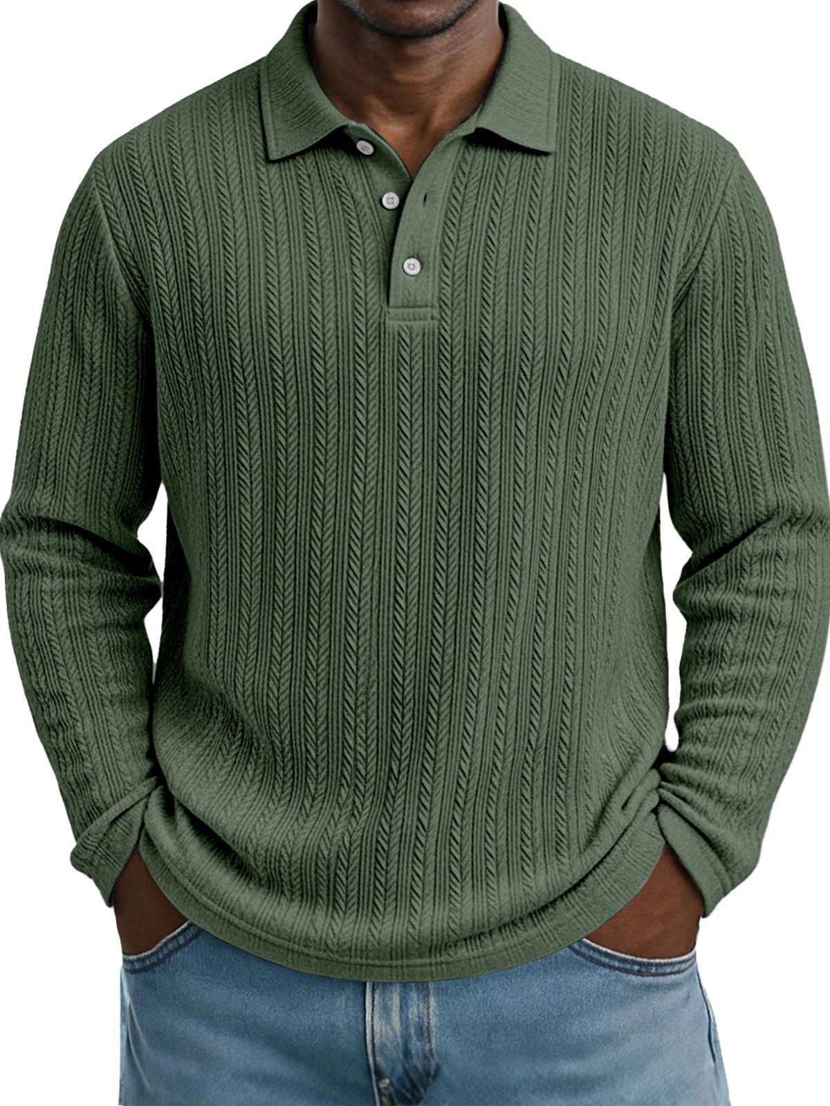 Casual Everyday Design Twist Textured Lapel Long-sleeved Polo Shirt