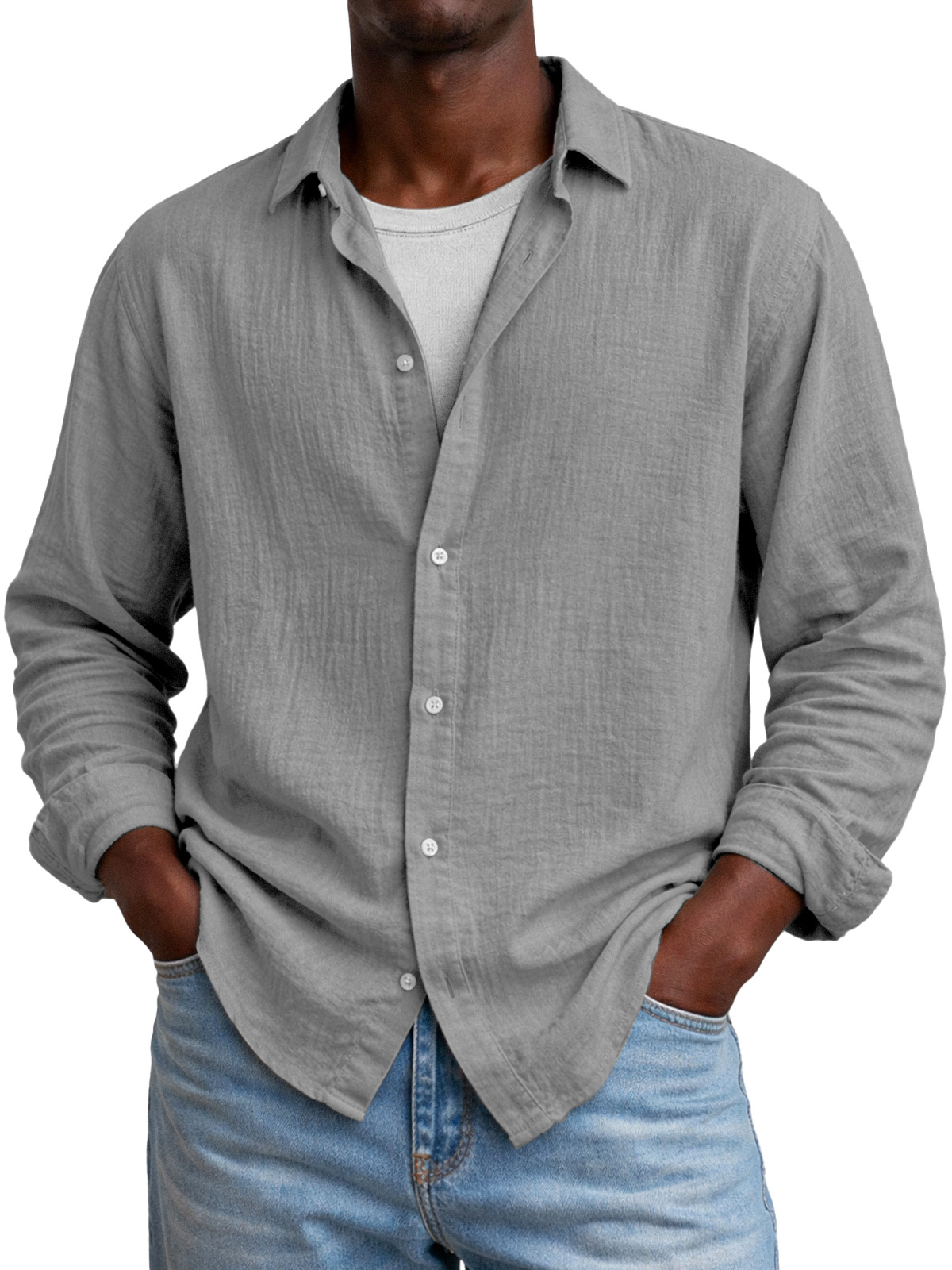 Comfortable And Breathable Versatile Solid-color Long-sleeved Shirt