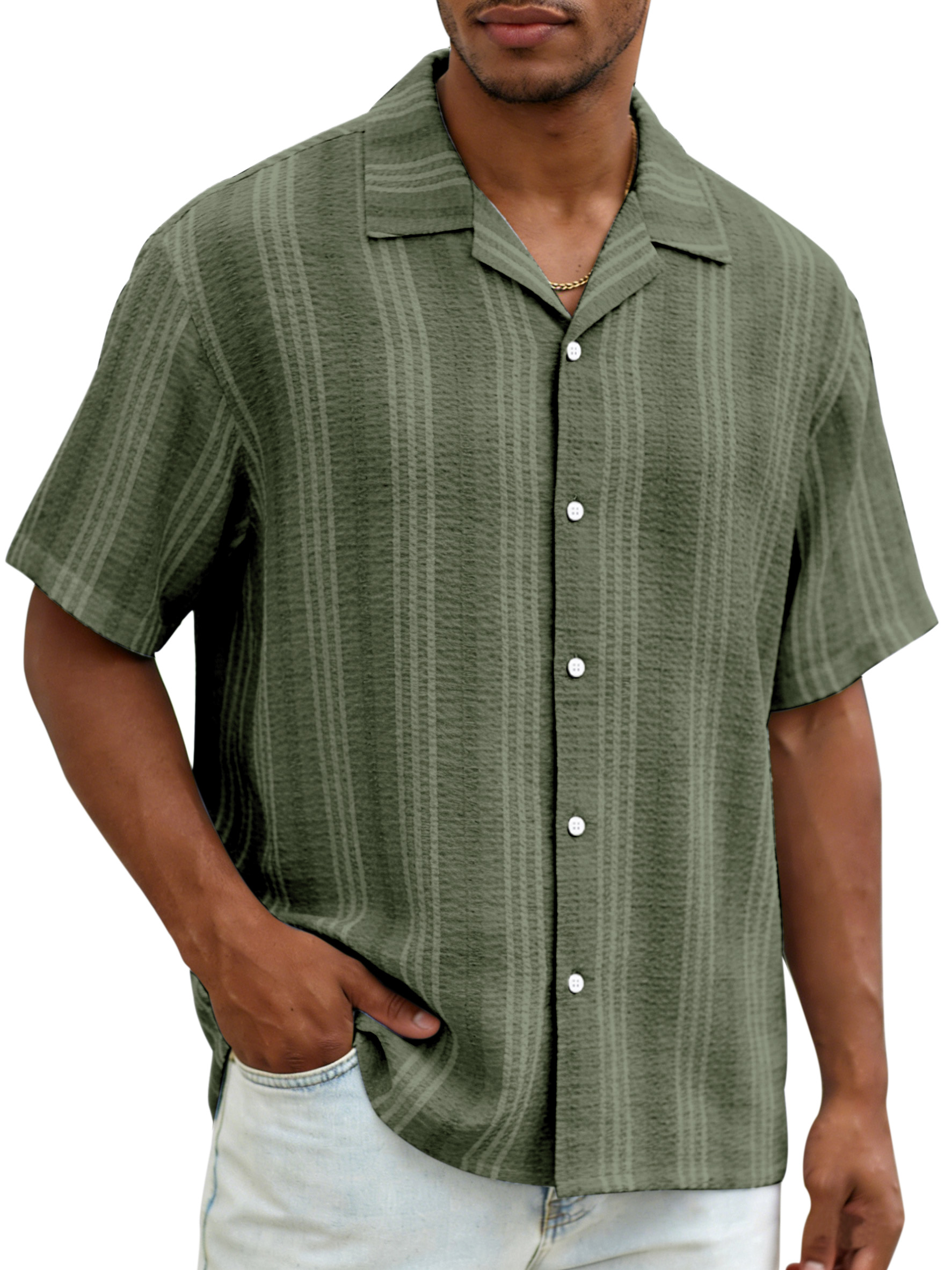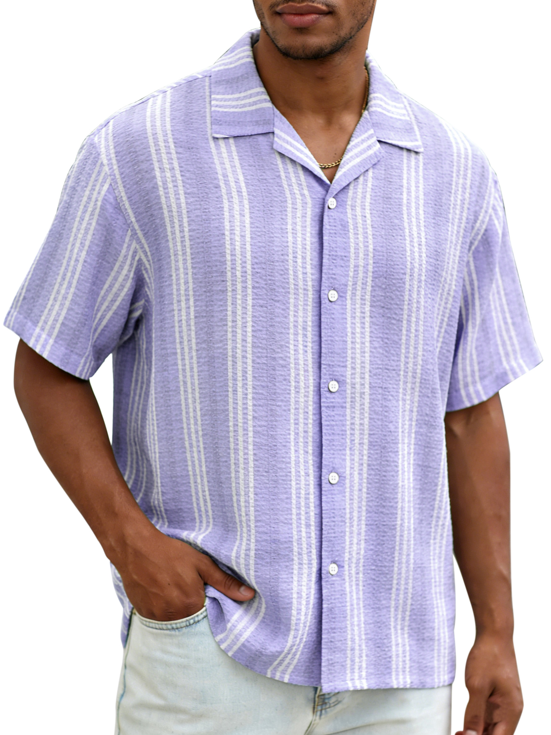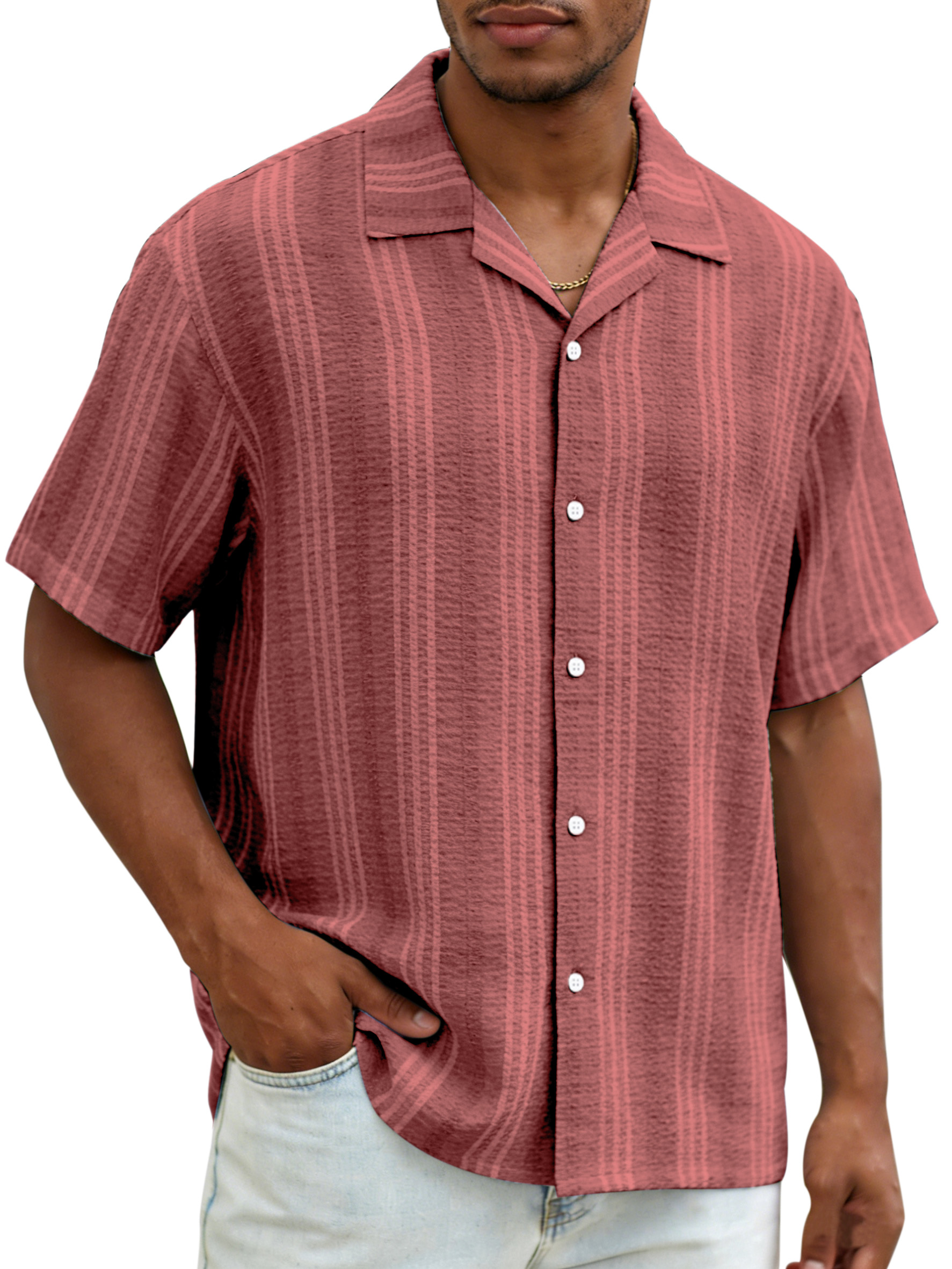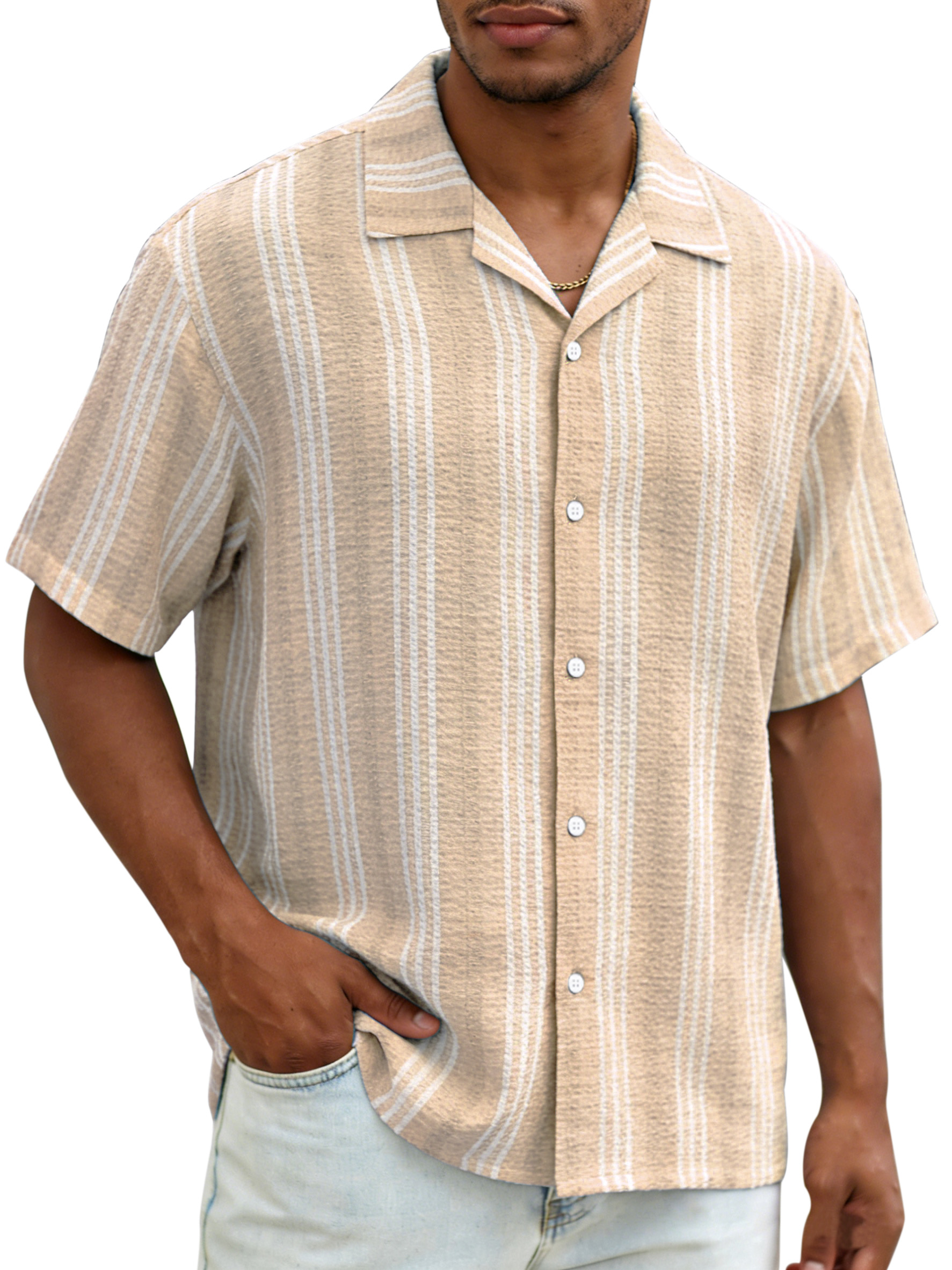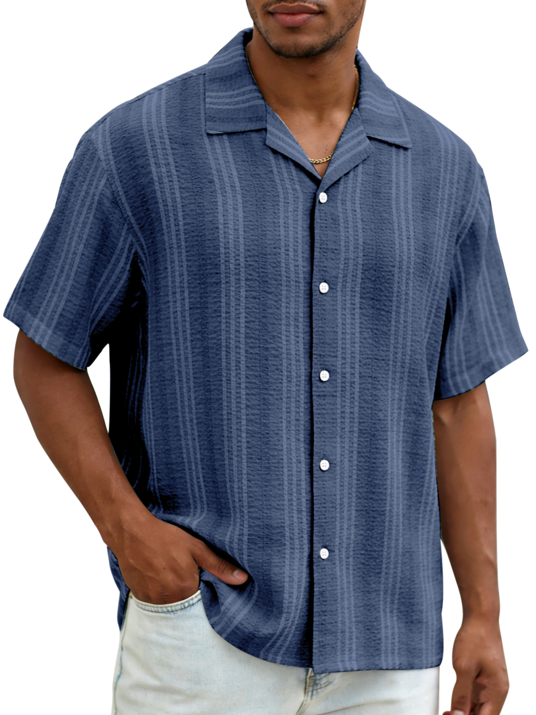 Daily casual resort style vertical striped breathable loose short-sleeved shirt