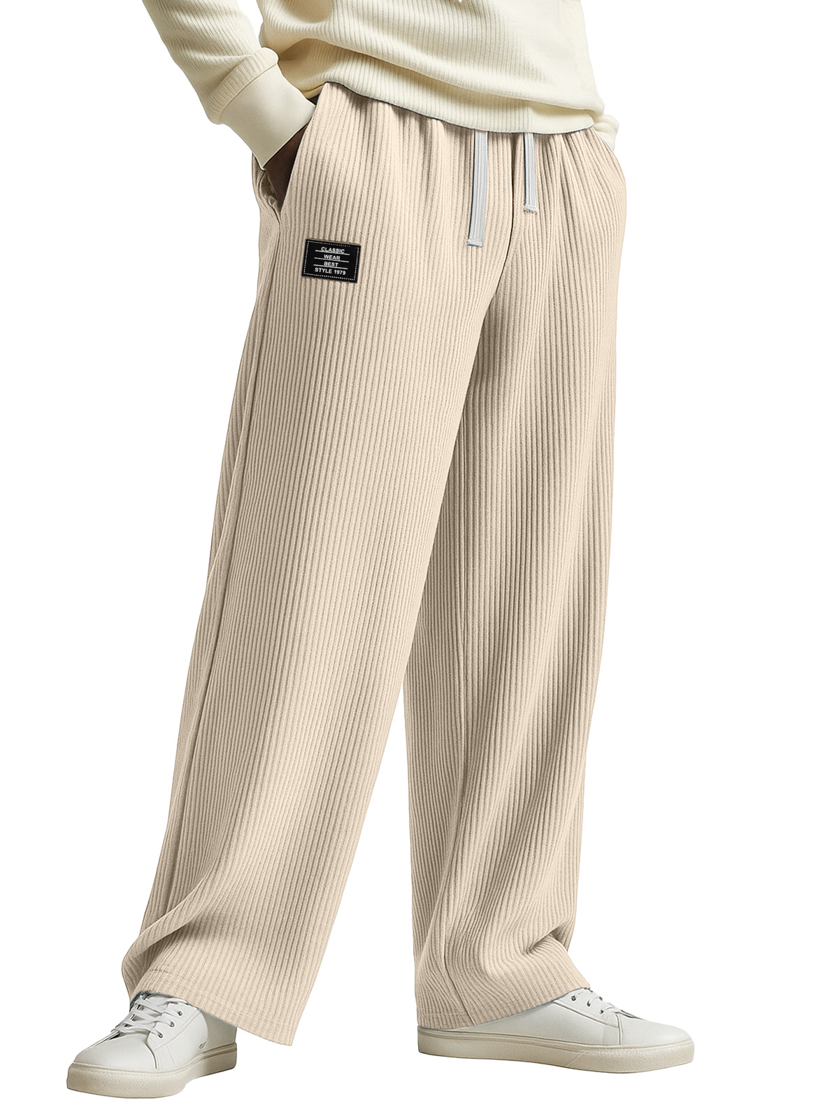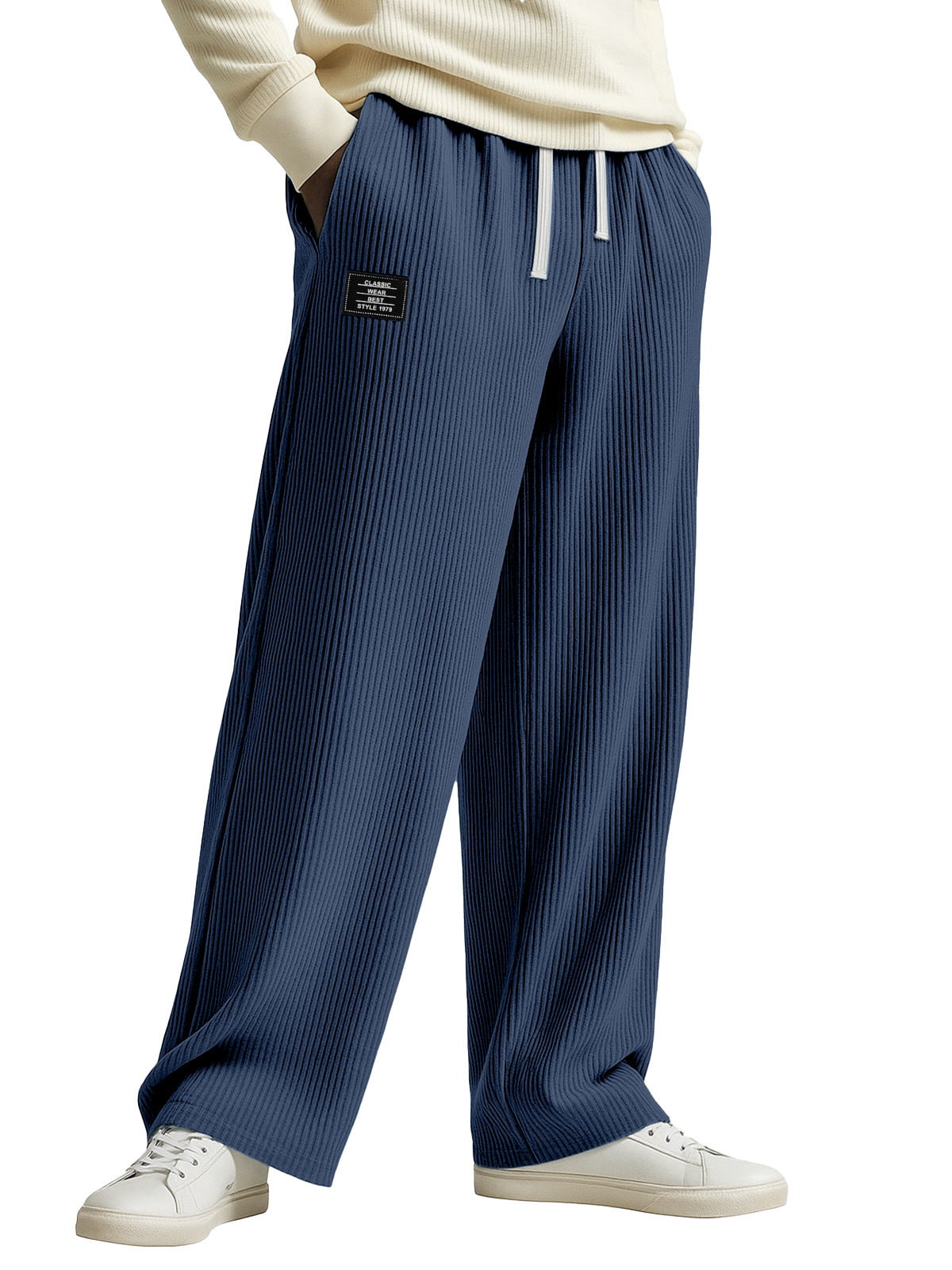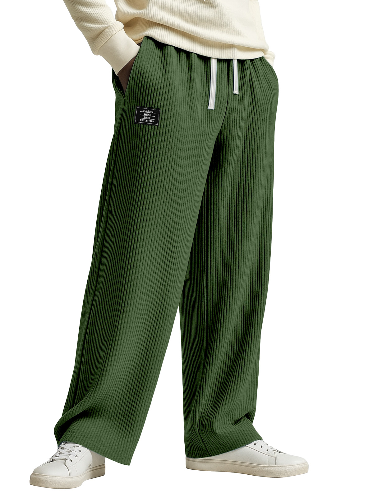 Fashionable And Casual Solid Color Vertical Pit Stripe Loose Trousers