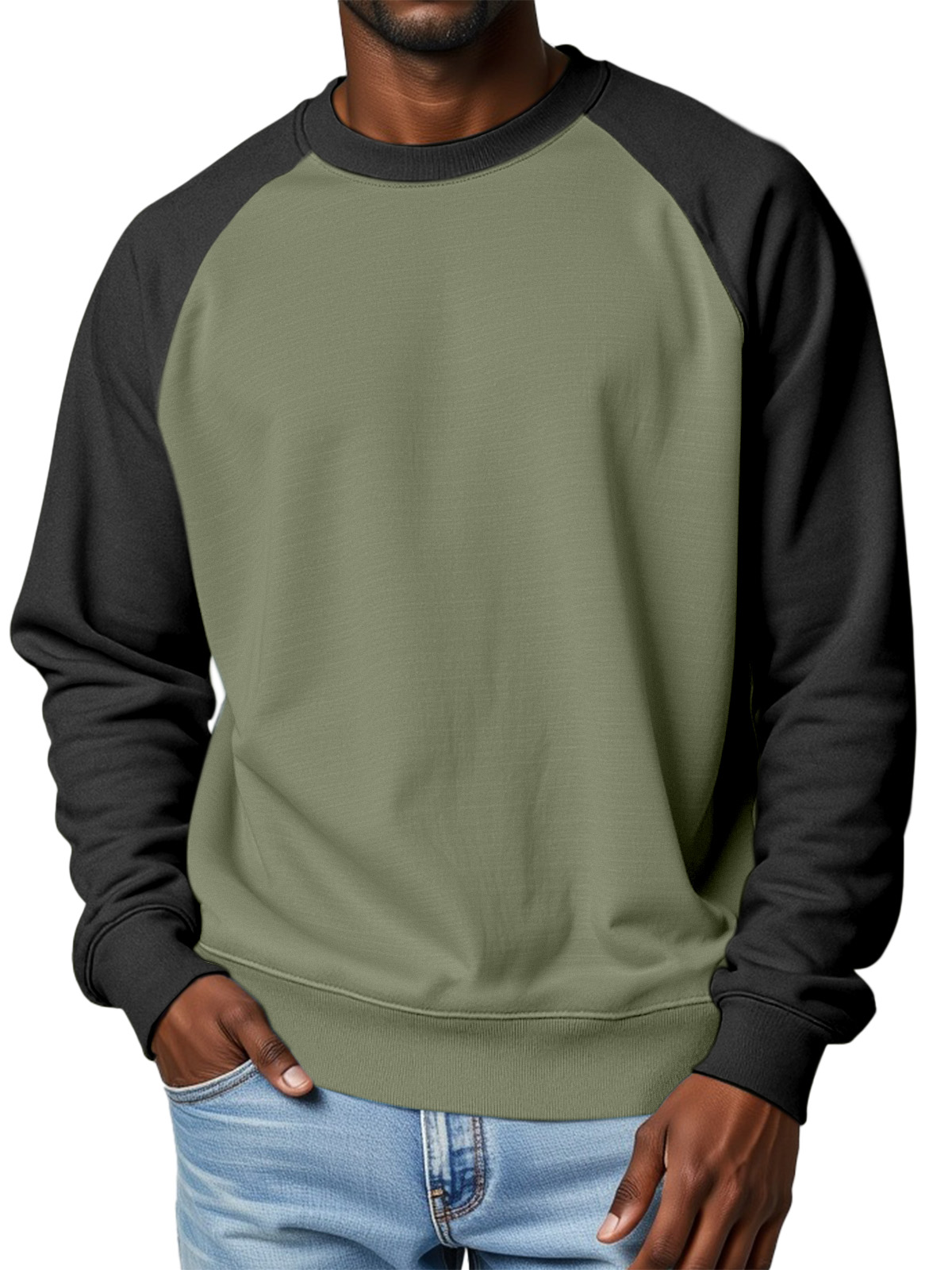 Men's 360g Cotton Solid Color Casual Raglan Round Neck Long-sleeved Sweatshirt