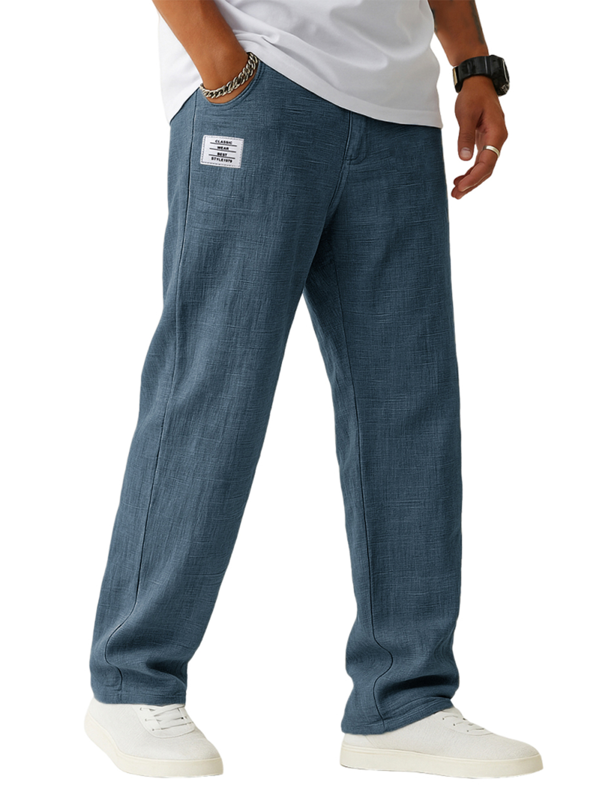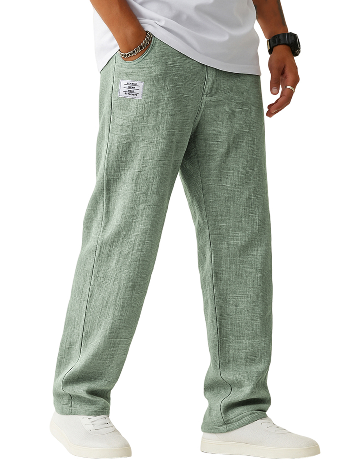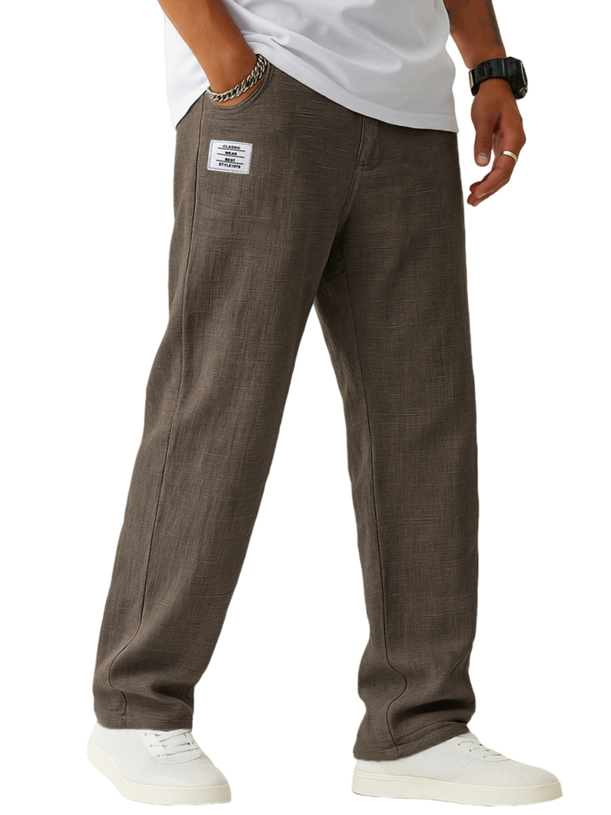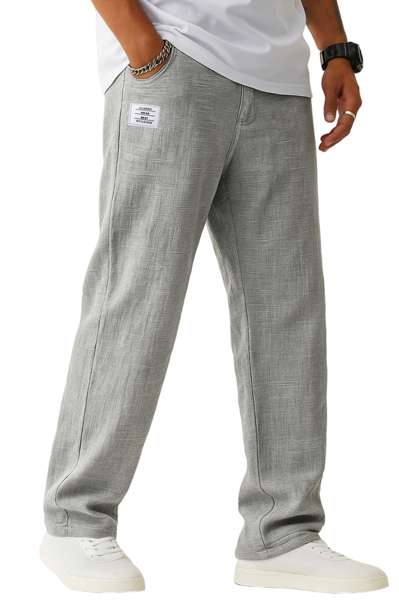 Men's Breathable Linen Casual Daily Pants with Embroidered Label