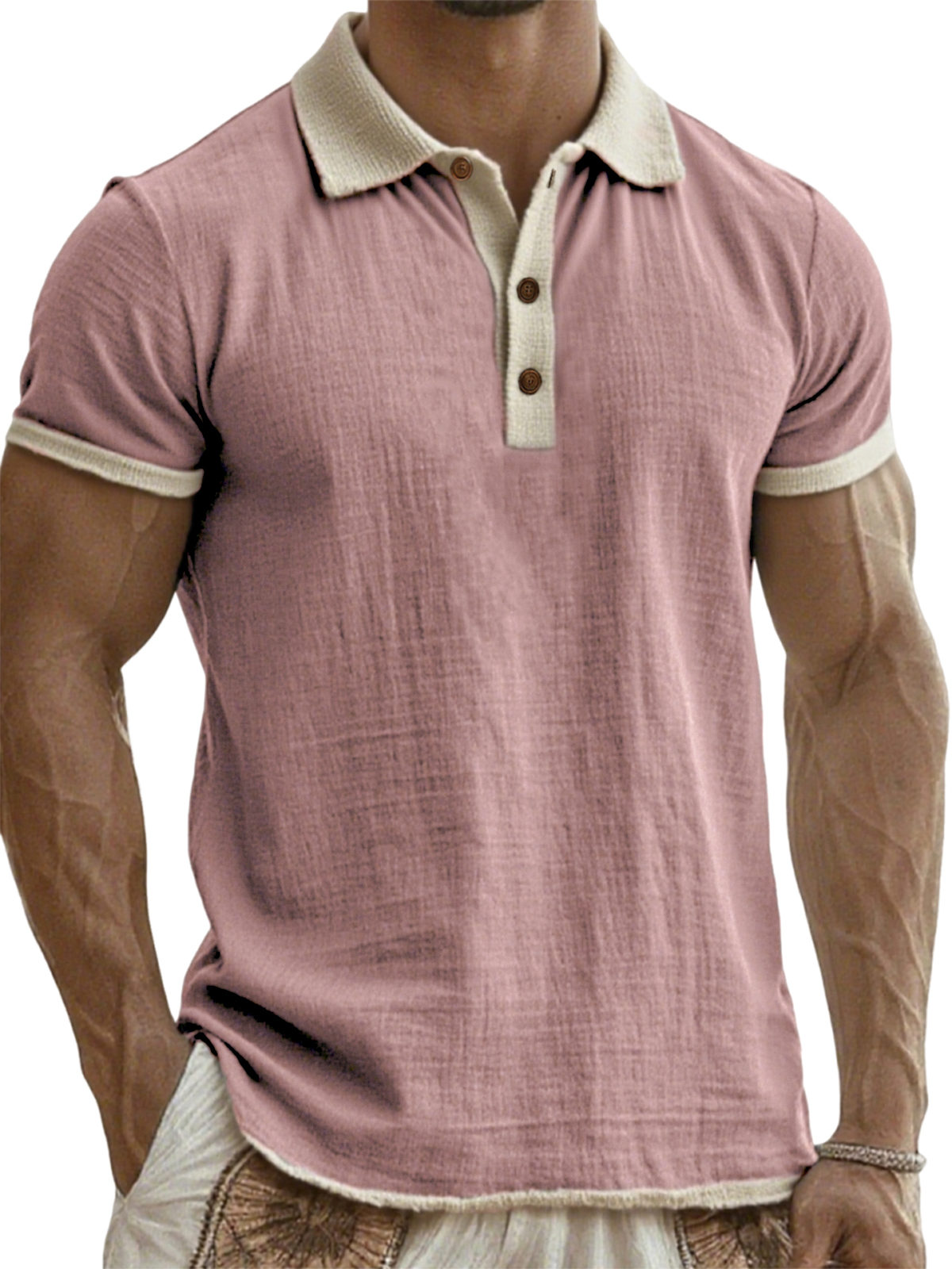 Men's Breathable Linen Crinkled Casual Colorblock Vacation Daily Short-sleeved Polo Shirt